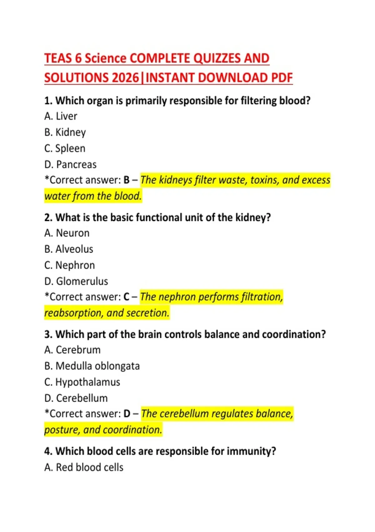 *Correct answer: B – The kidneys filter waste, toxins, and excess