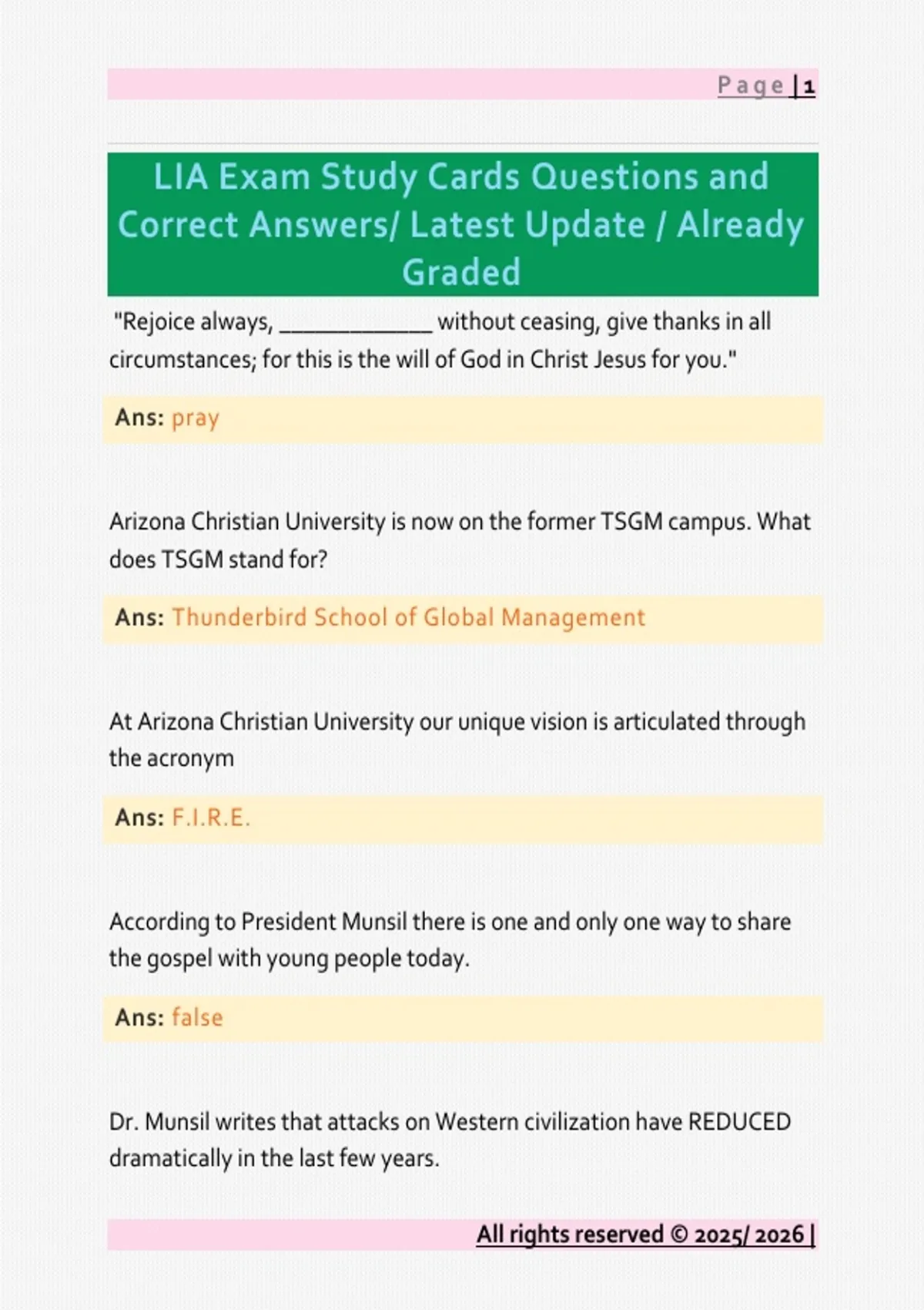 LIA Exam Study Cards Questions and