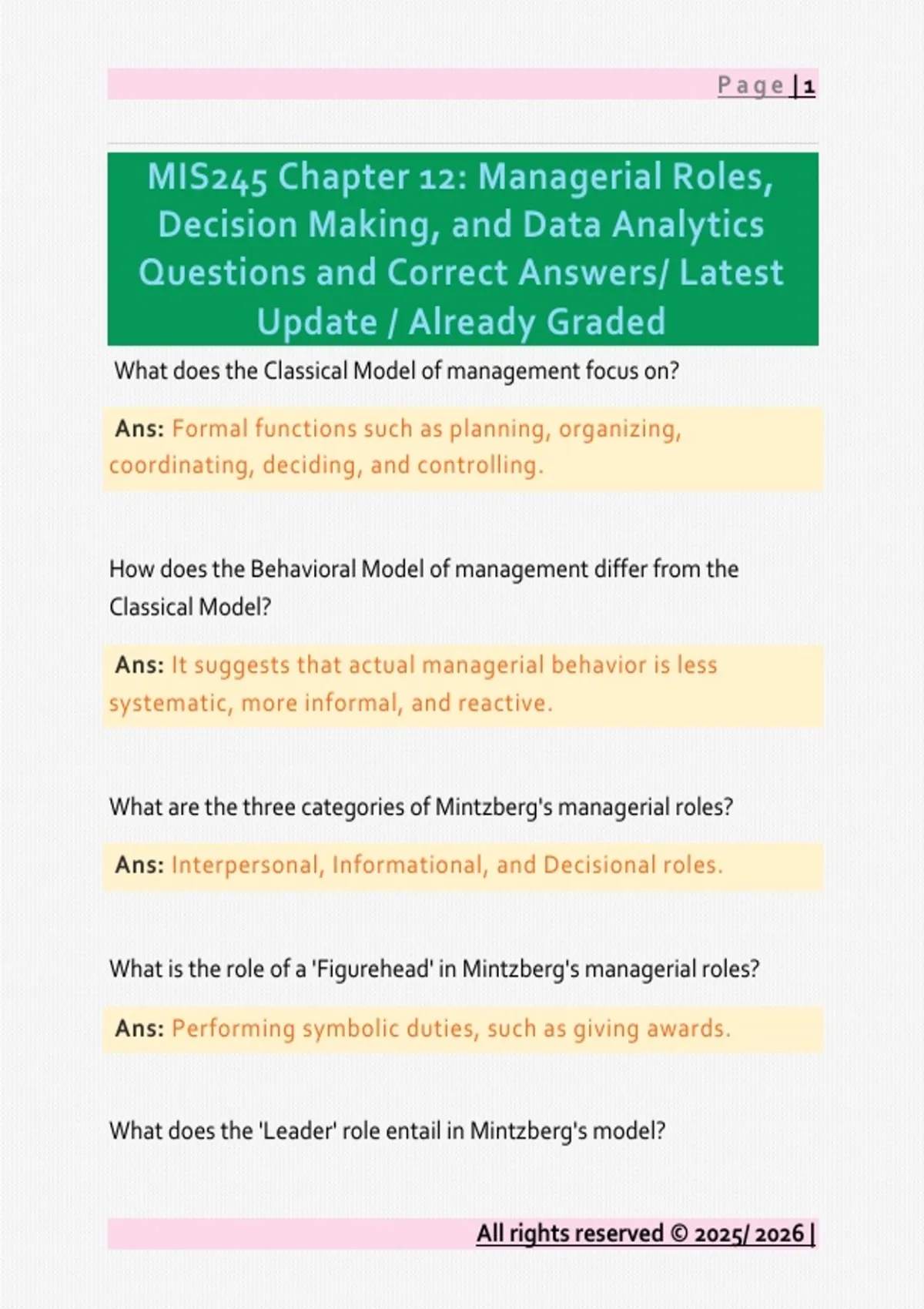 Questions and Correct Answers/ Latest