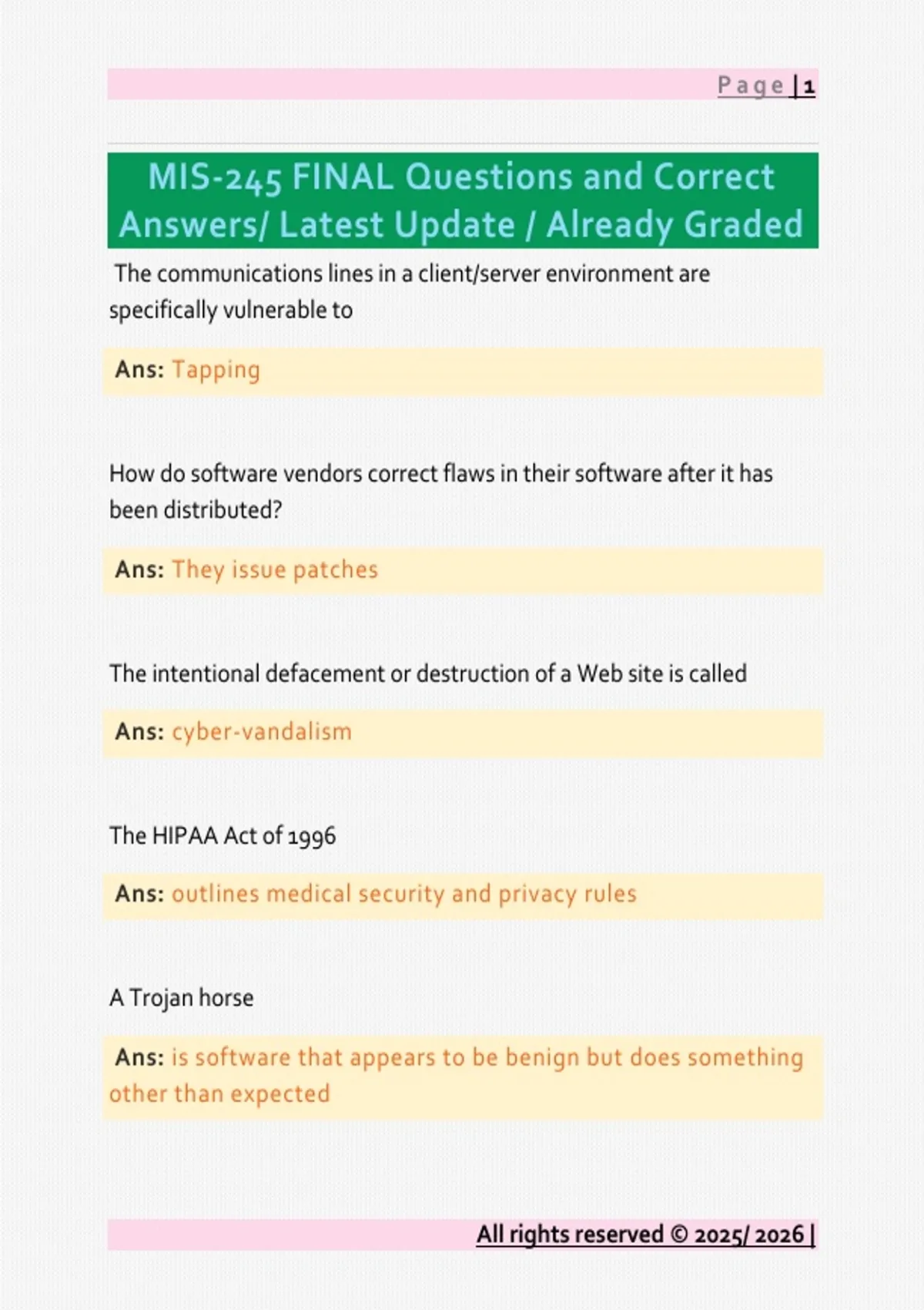 MIS-245 FINAL Questions and Correct