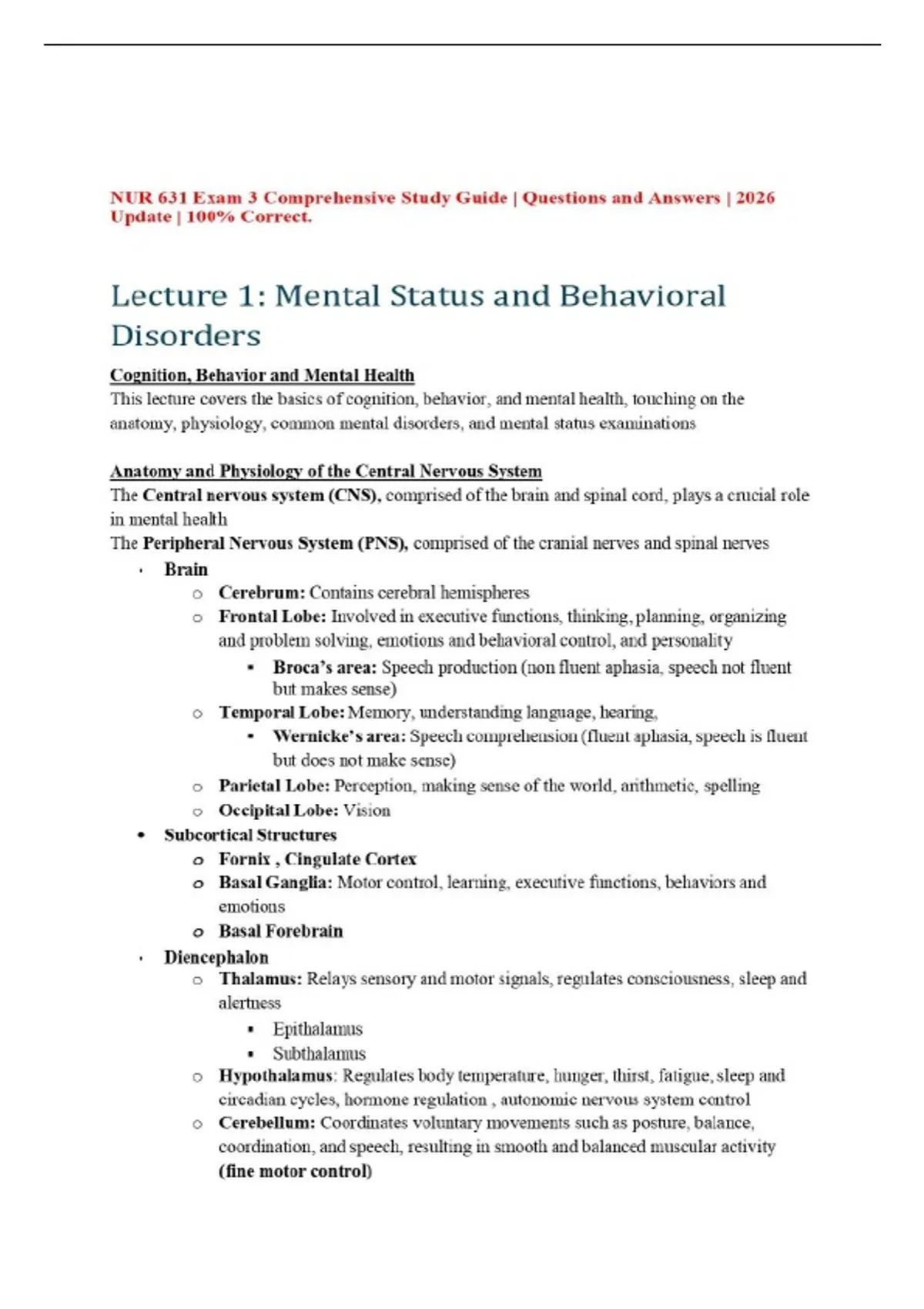 NUR 631 Exam 3 Comprehensive Study Guide | Questions and Answers | 2026 Update | 100% Correct.