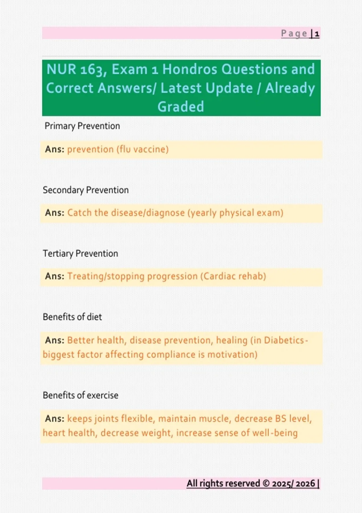 Ans: Catch the disease/diagnose (yearly physical ex am)