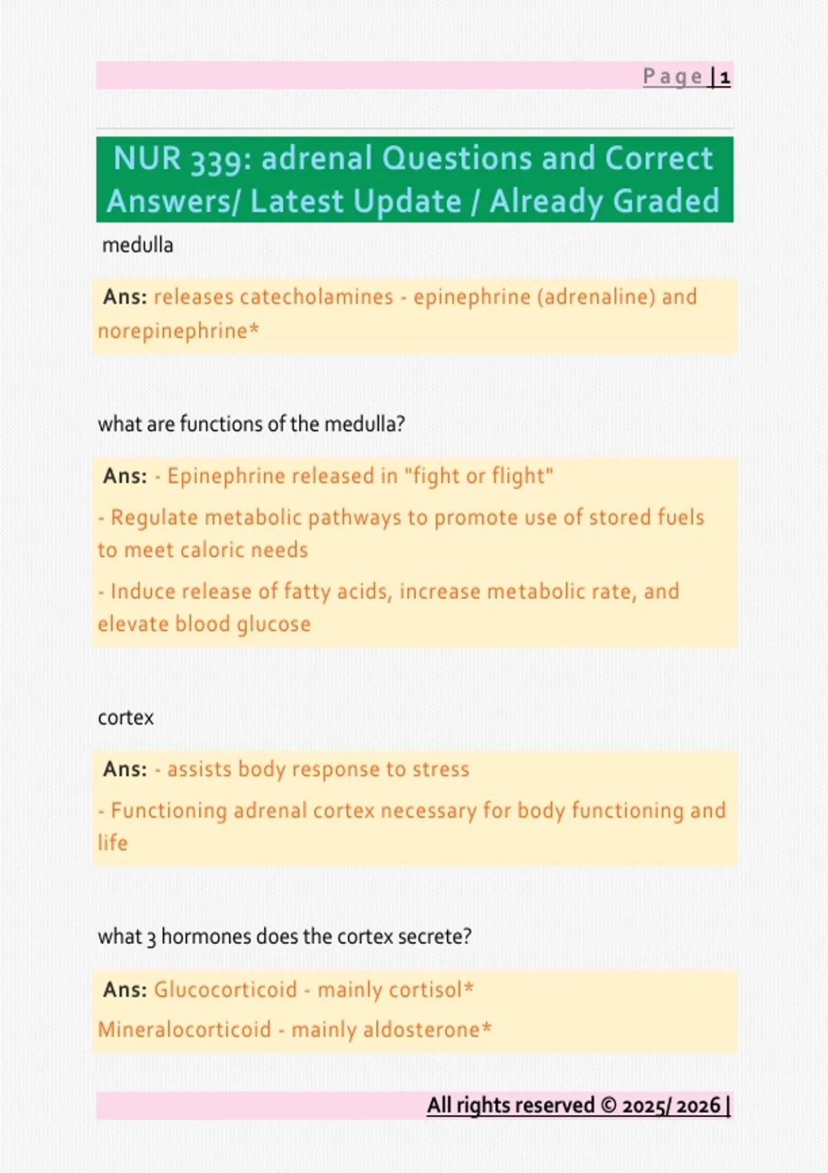 NUR 339: adrenal Questions and Correct