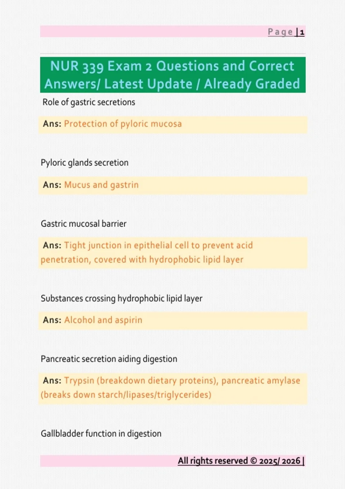 NUR 339 Exam 2 Questions and Correct
