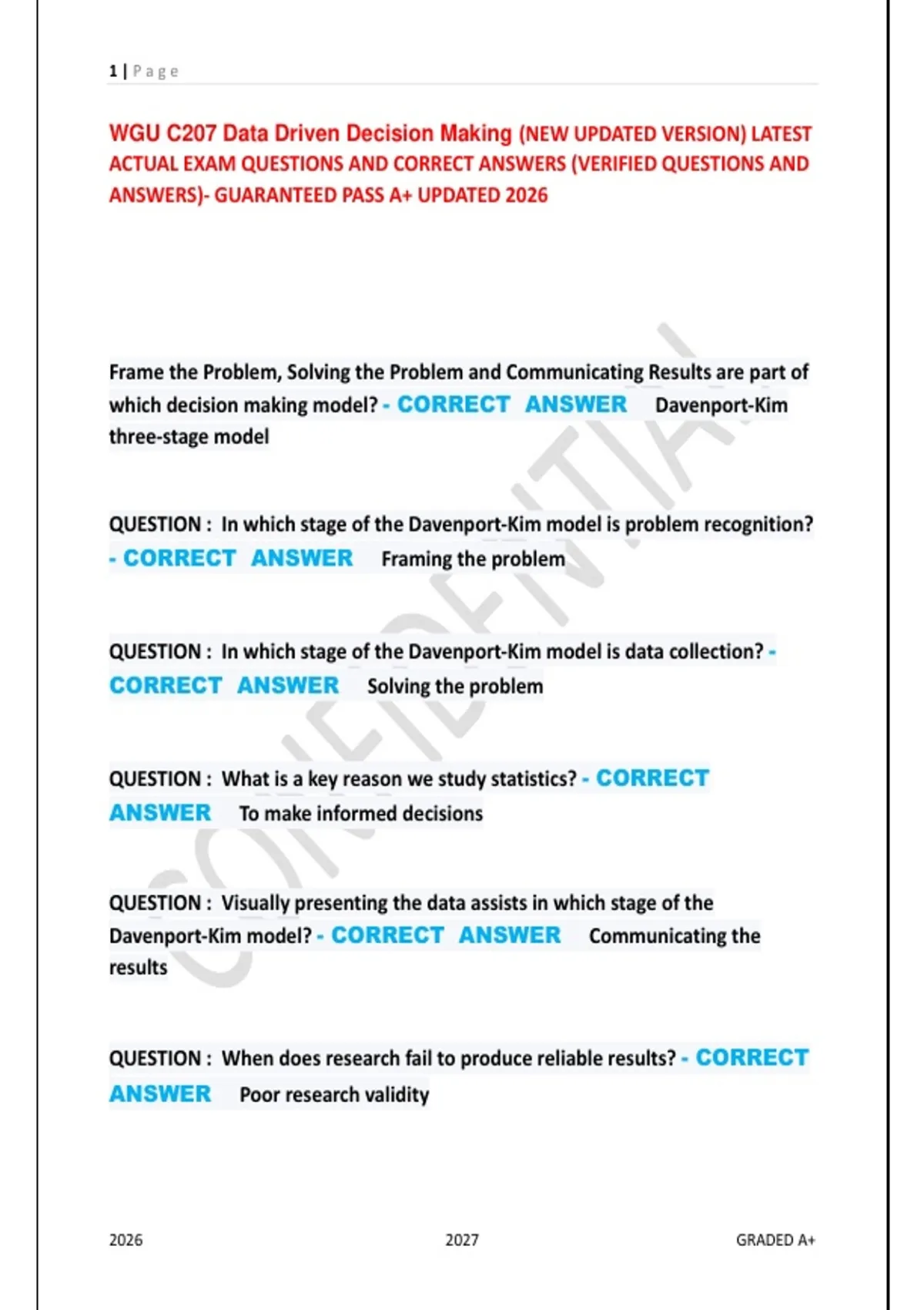 WGU C207 Data-Driven Decision Making 2027 | Updated Practice Questions & Study Guide