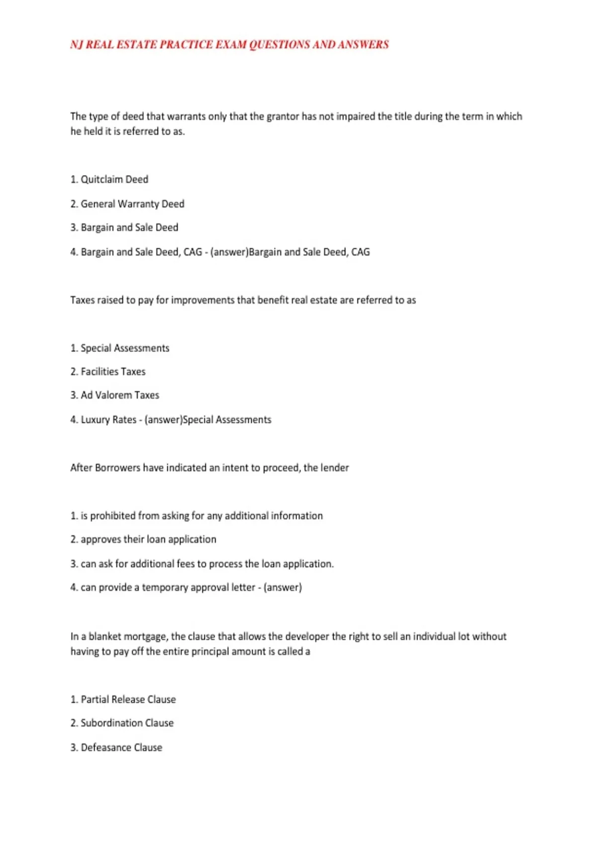 ,NJ REAL ESTATE PRACTICE EXAM QUESTIONS AND ANSWERS