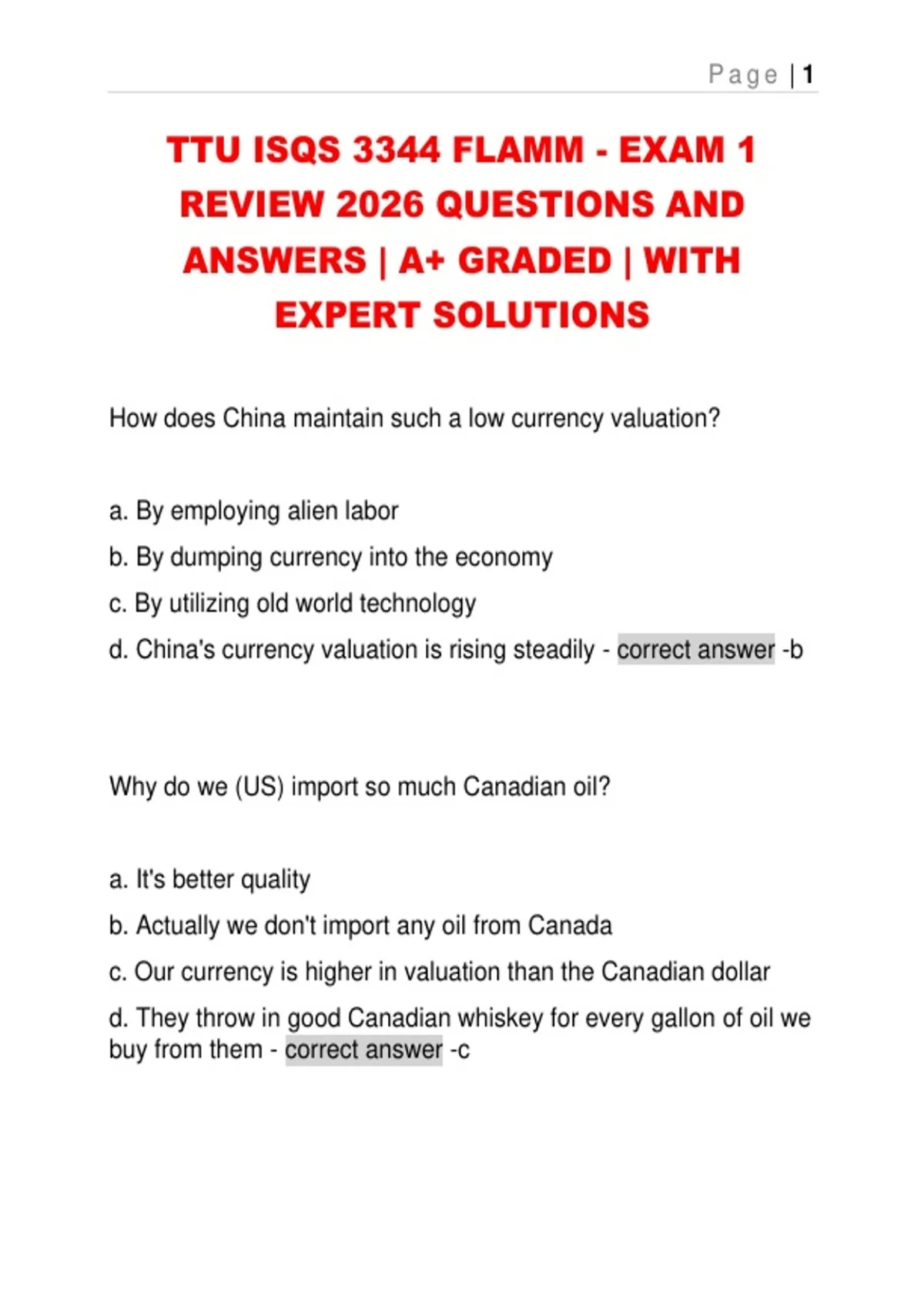 TTU ISQS 3344 FLAMM - EXAM 1