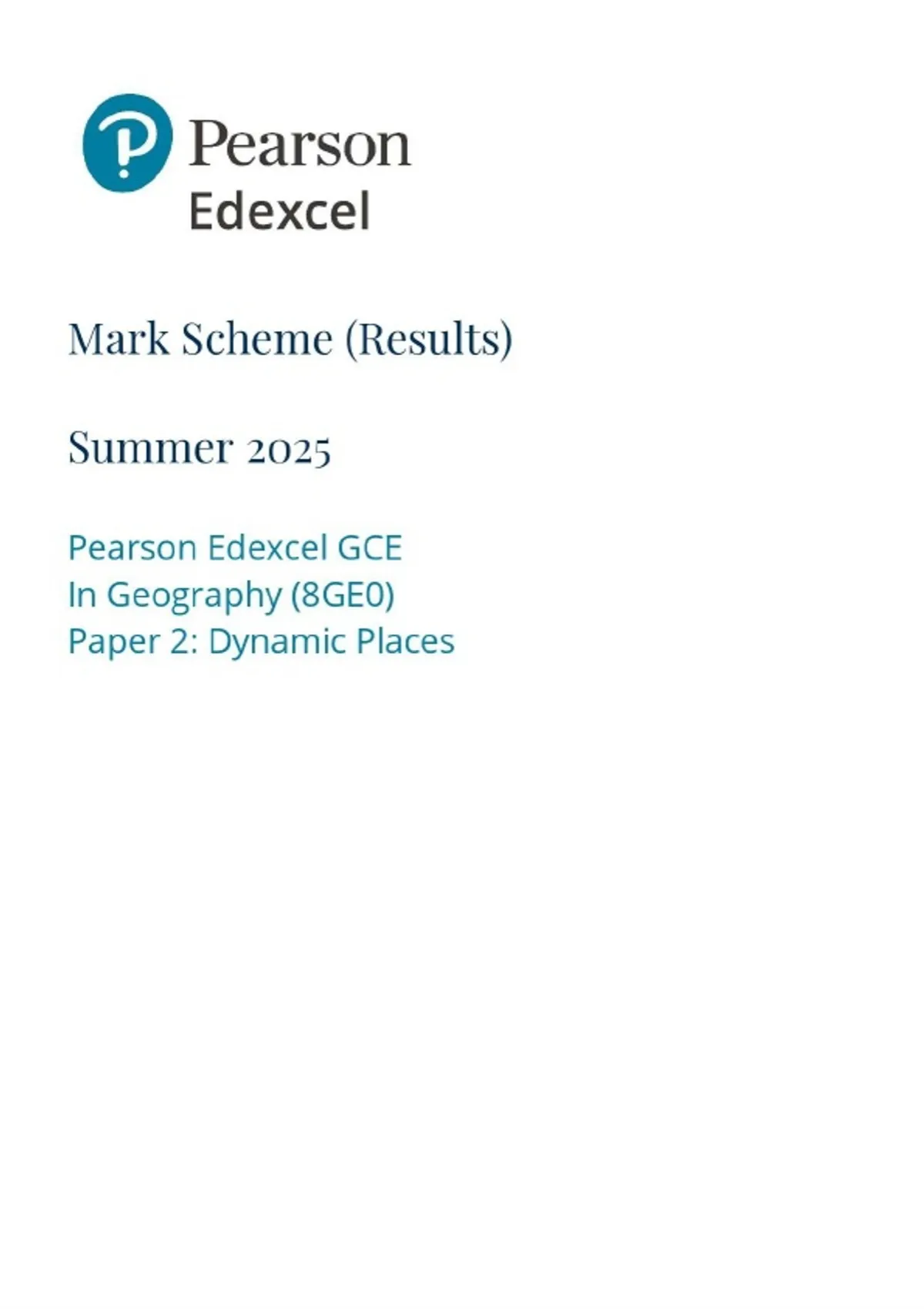 AS-LEVEL EDEXCEL 2025 GEOGRAPHY PAPER 2 8GE0/02 MARK SCHEME DYNAMIC PLACES