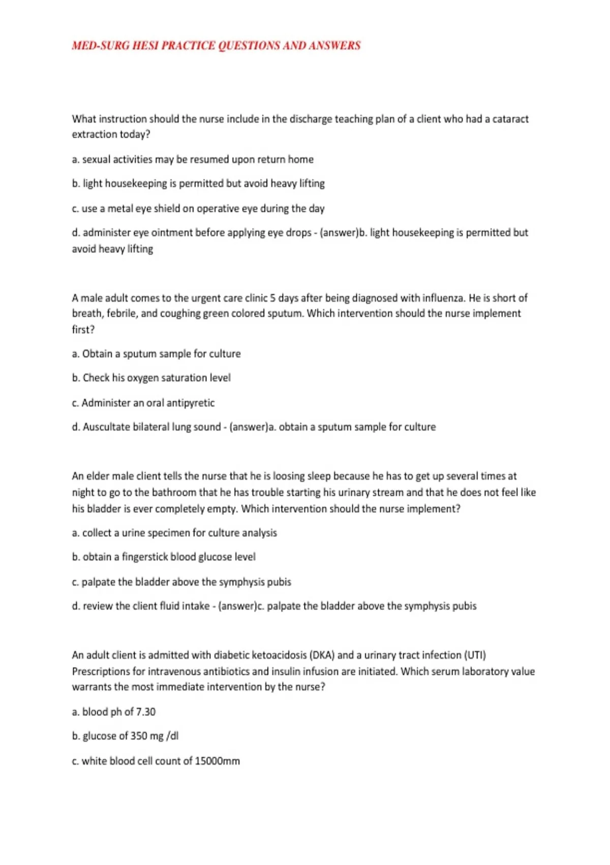 , MED-SURG HESI PRACTICE QUESTIONS AND ANSWERS