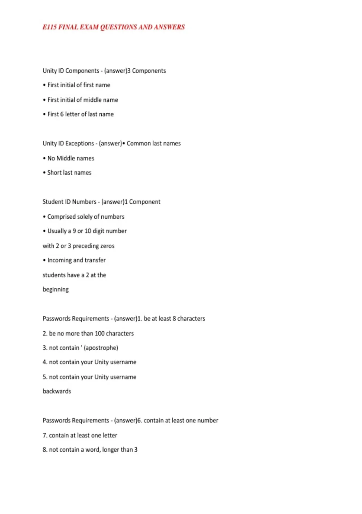 E115 FINAL EXAM QUESTIONS AND ANSWERS