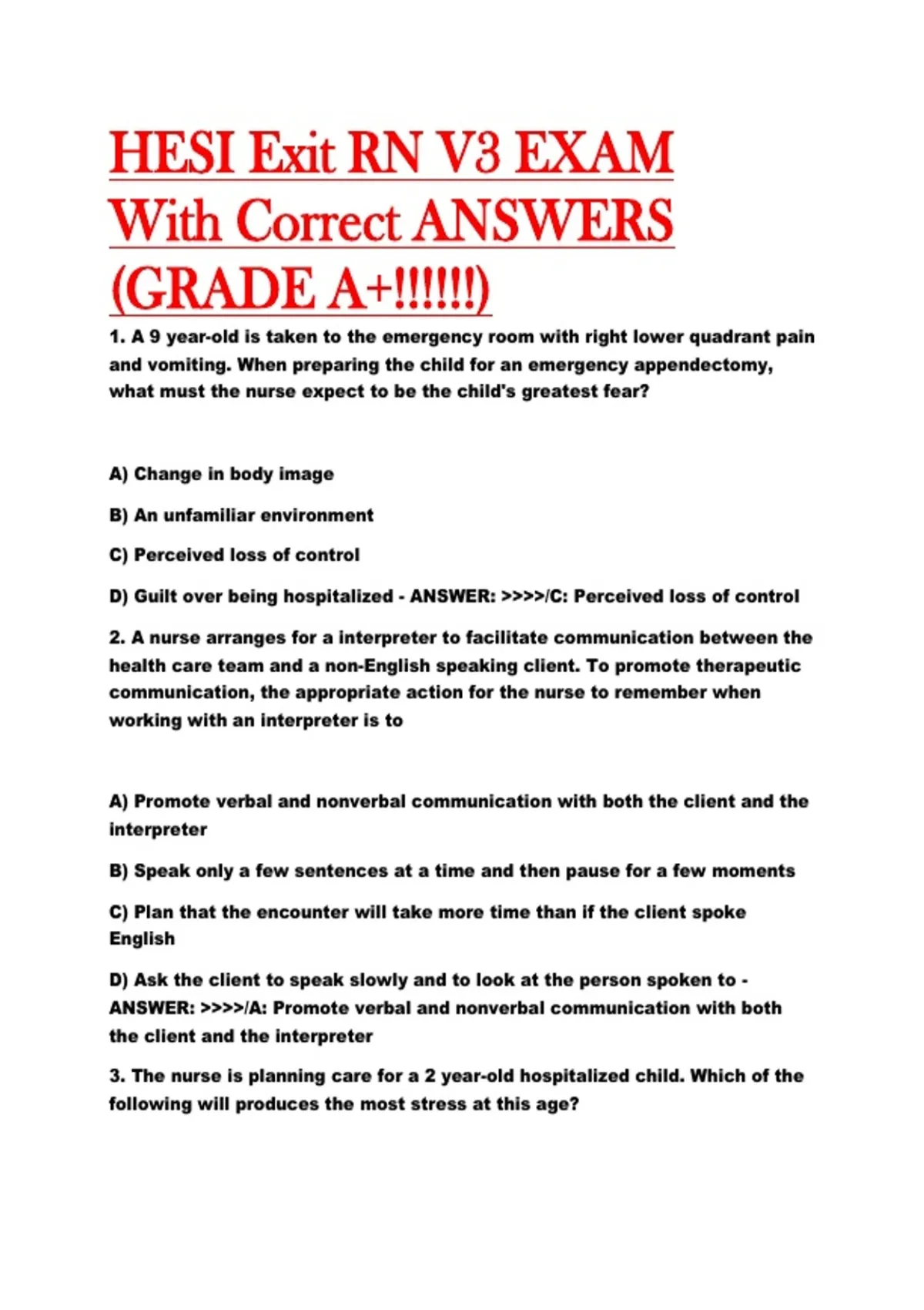 HESI Exit RN V3 EXAM