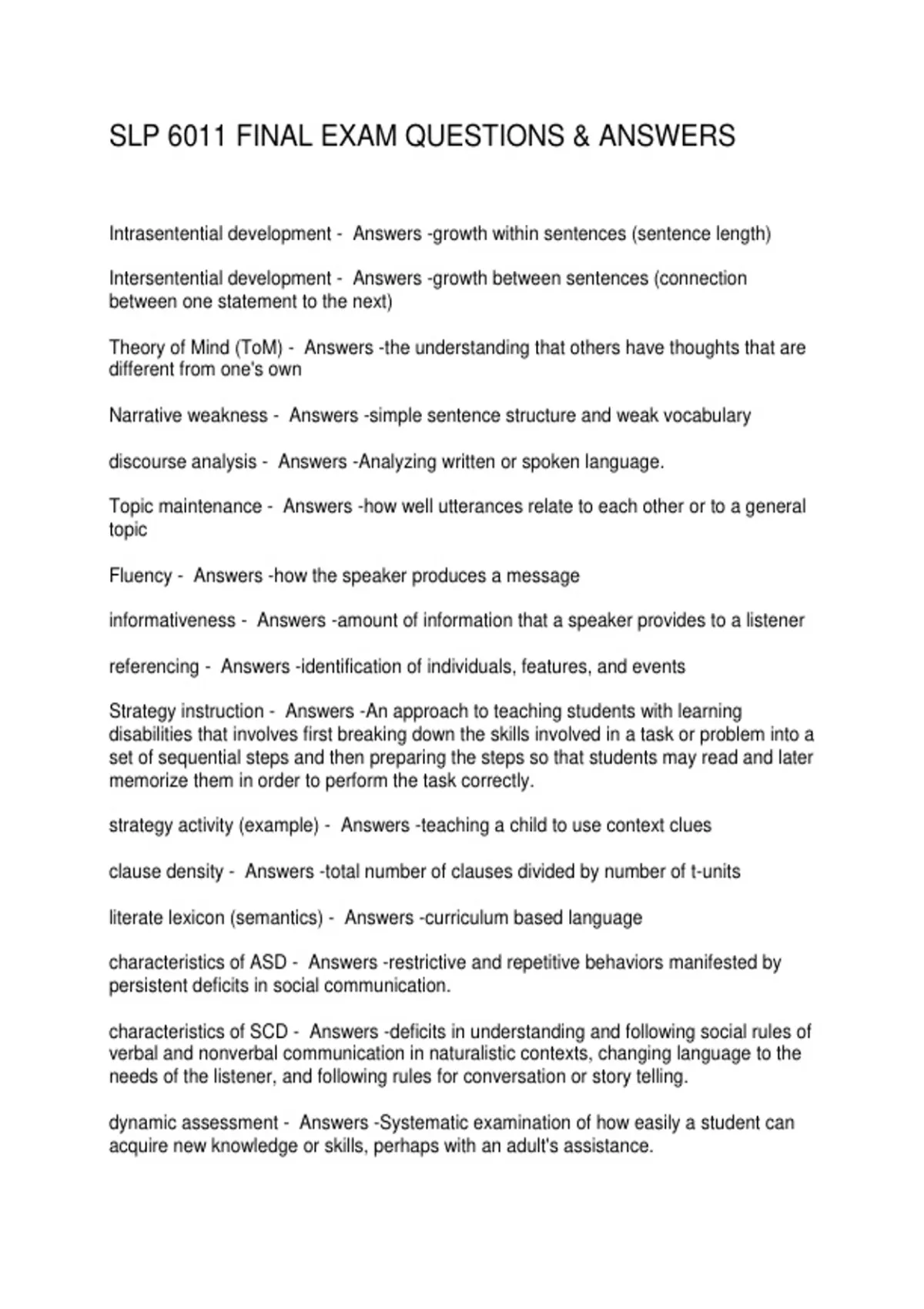 SLP 6011 FINAL EXAM QUESTIONS & ANSWERS