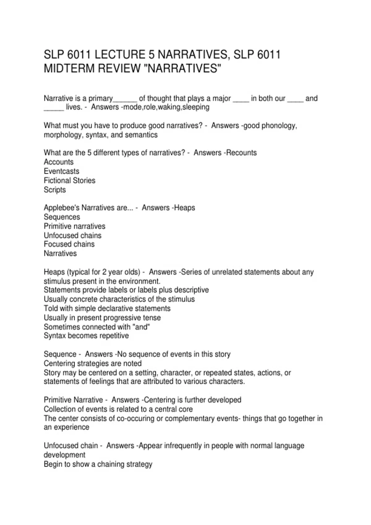 SLP 6011 LECTURE 5 NARRATIVES, SLP 6011 MIDTERM REVIEW NARRATIVES