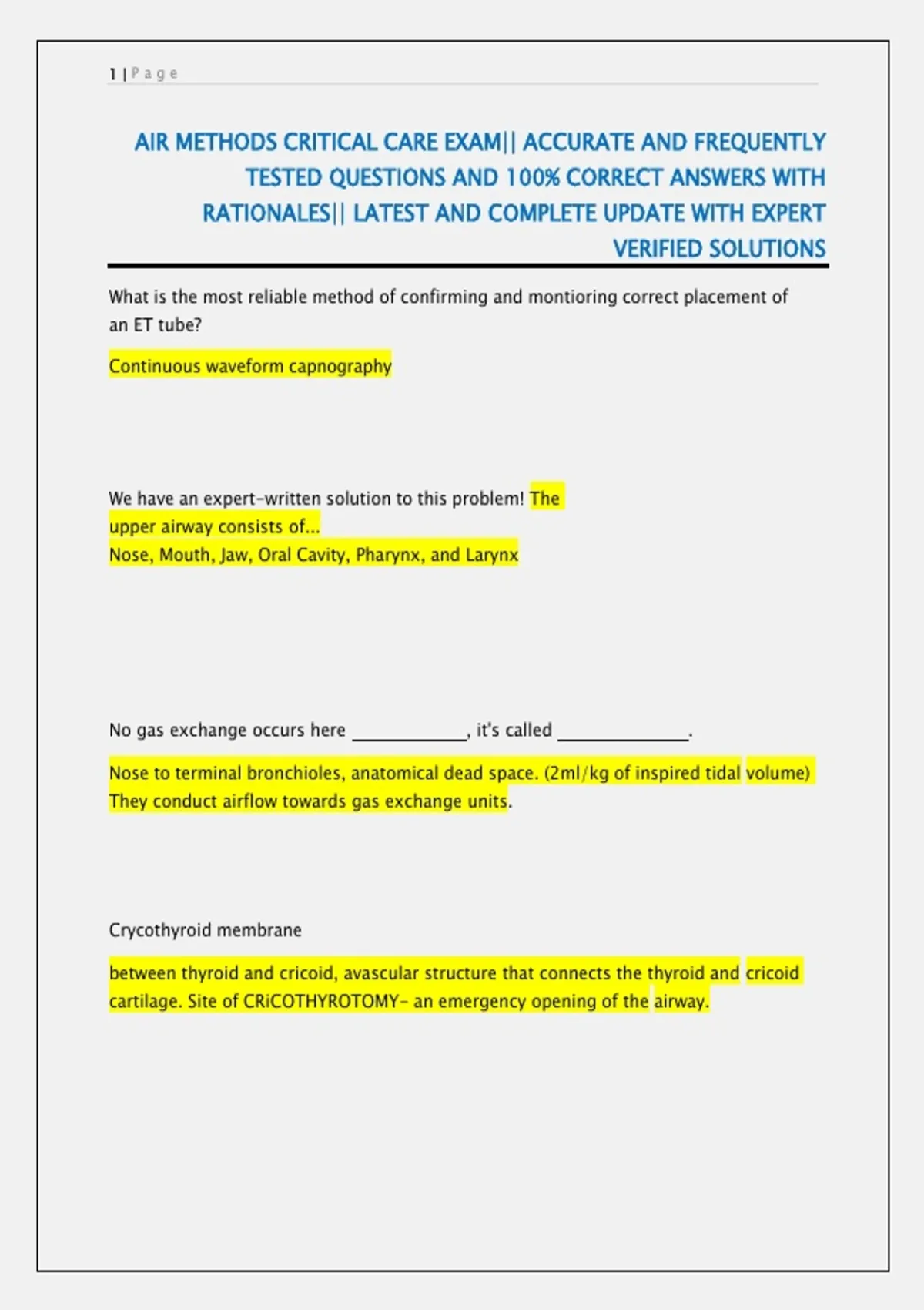 AIR METHODS CRITICAL CARE EXAM|| ACCURATE AND FREQUENTLY