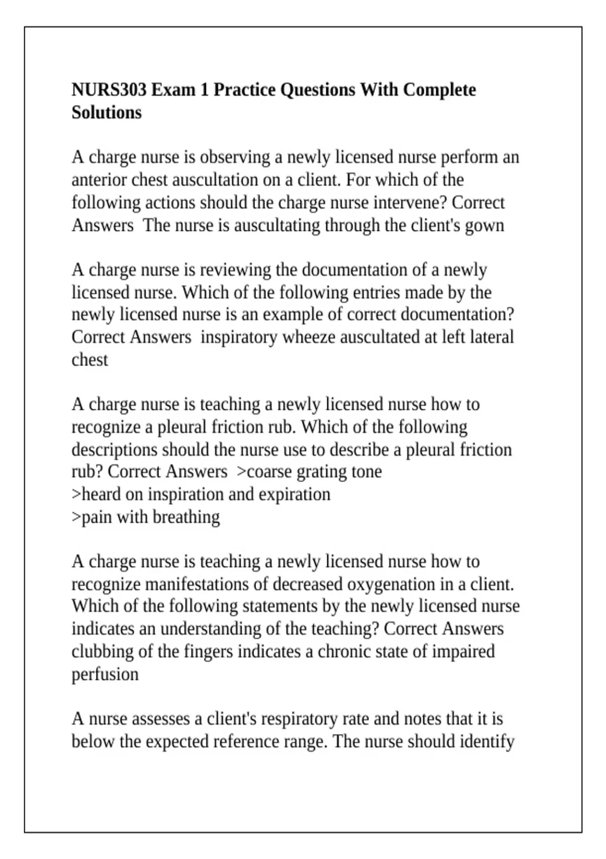 Correct Answers inspiratory wheeze auscultated at left lateral