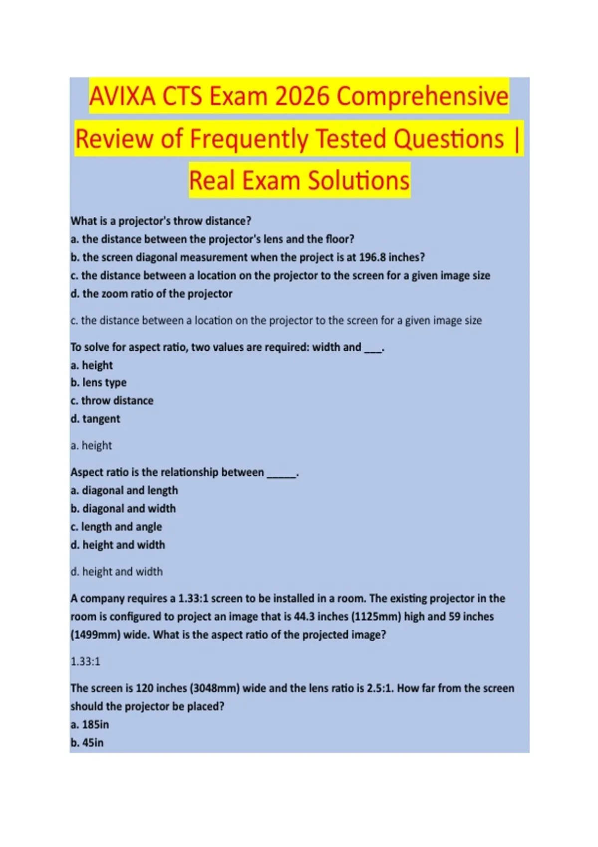 a. throw ratio; screen height