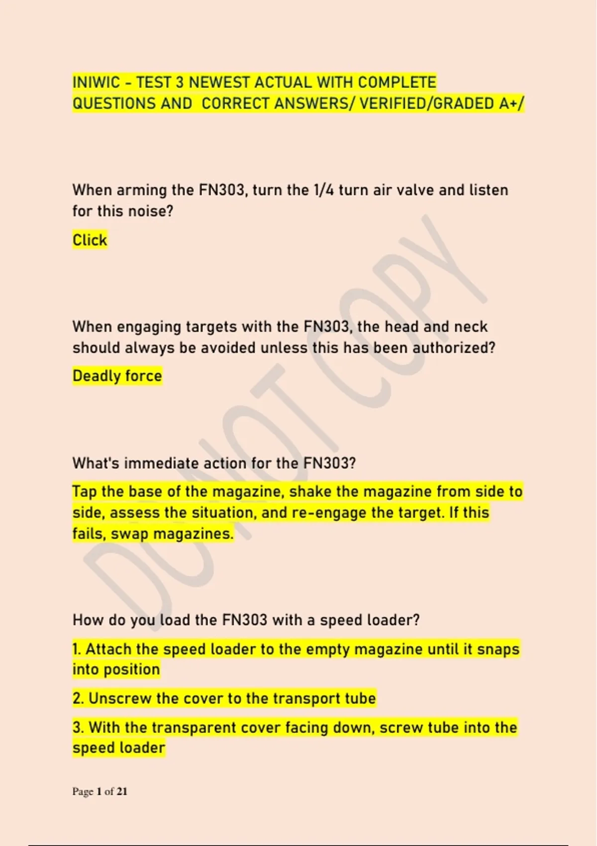 INIWIC - TEST 3 NEWEST ACTUAL WITH COMPLETE QUESTIONS AND CORRECT ANSWERS/ VERIFIED/GRADED A+/
