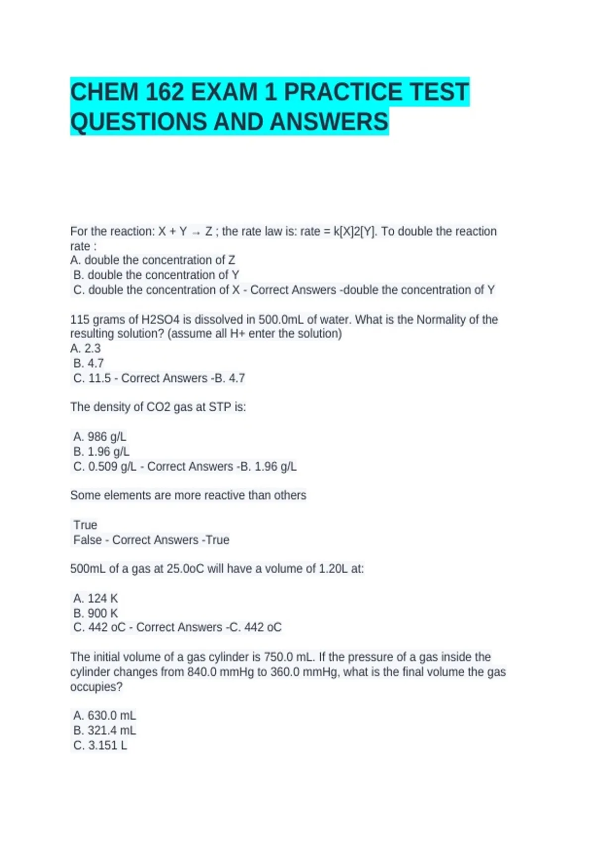 D. 21.2 g Na2CO3 and add 2.00 L of water to it. - Correct Answers -C. 21.2 g Na2CO3