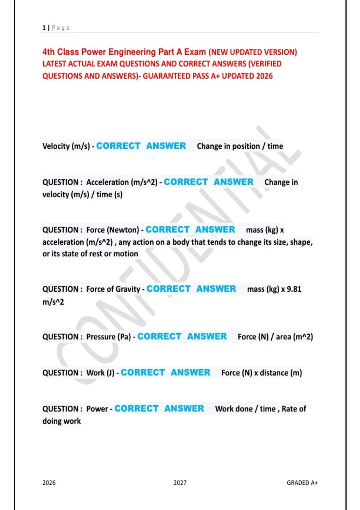4th Class Power Engineering Part A Exam (NEW UPDATED VERSION)