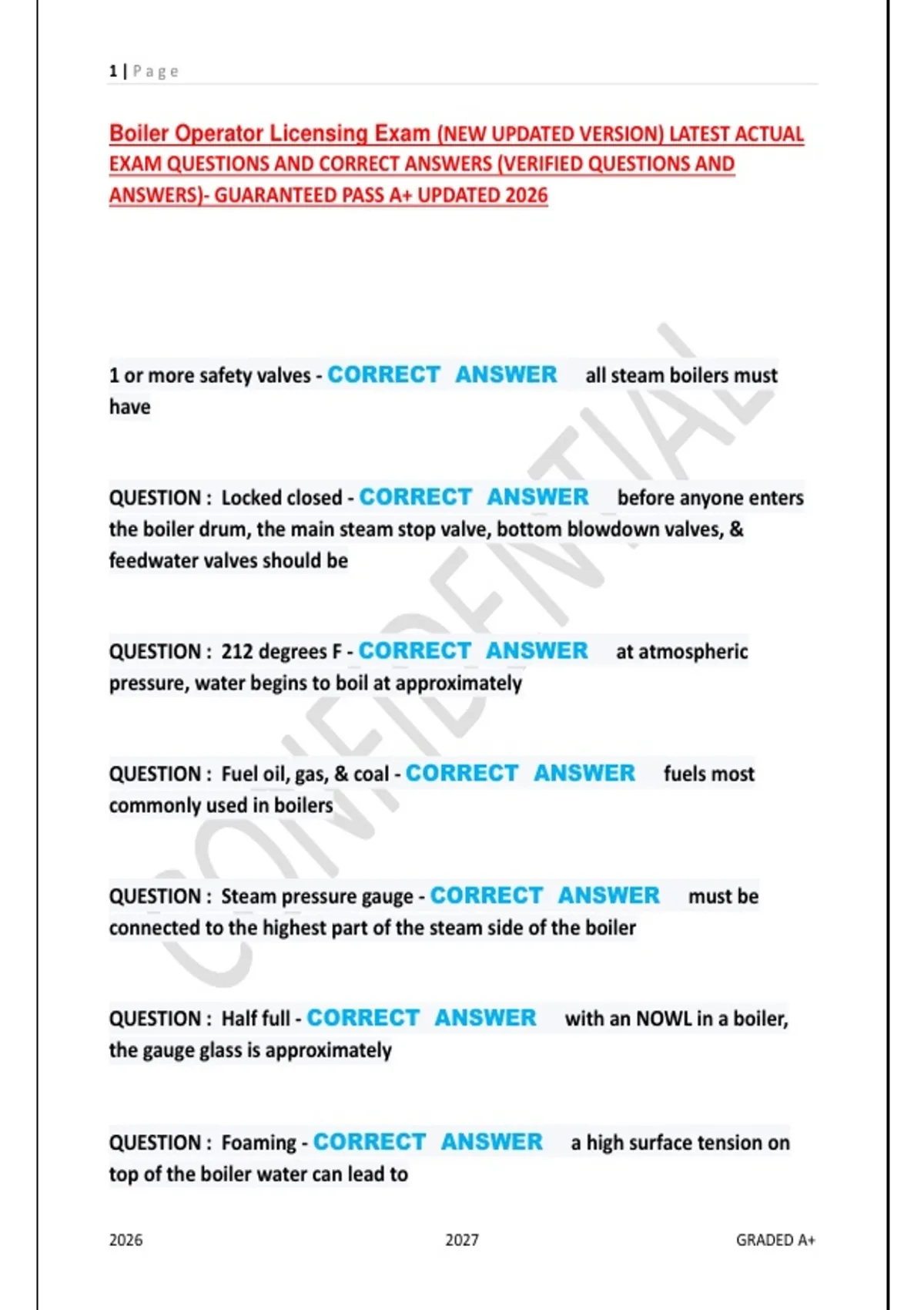 Boiler Operator Licensing Exam (NEW UPDATED VERSION) LATEST ACTUAL