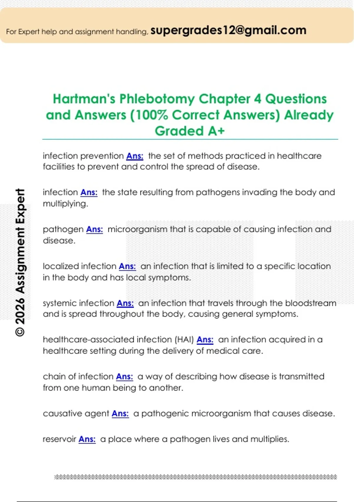 Hartman's Phlebotomy Chapter 4 Questions and Answers (100% Correct Answers) Already Graded A+