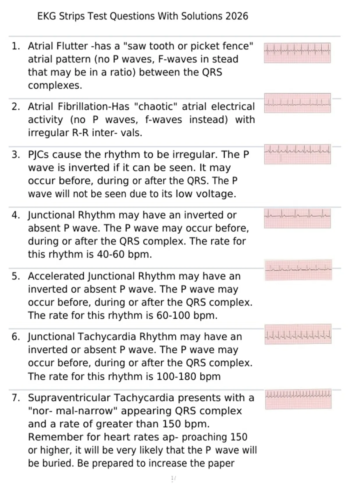 , EKG Strips Test Questions With Solutions 2026