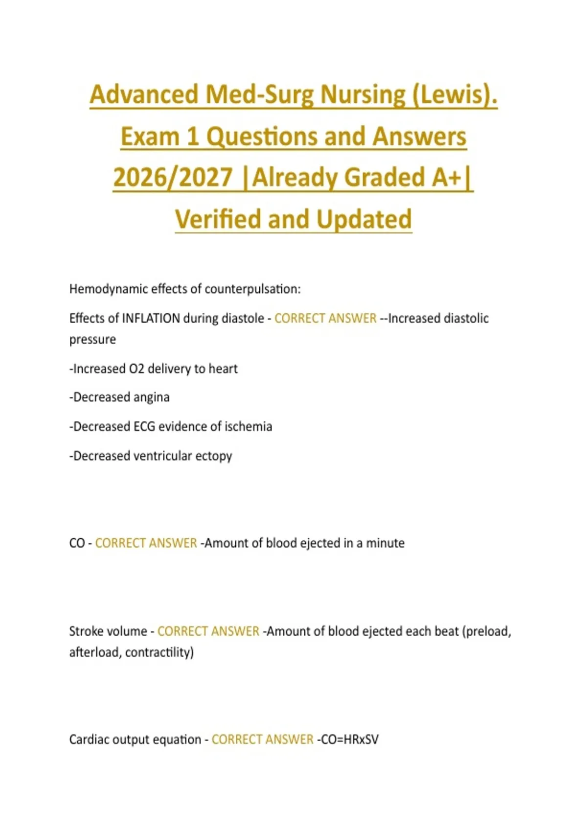 Advanced Med-Surg Nursing (Lewis). Exam 1 Questions and Answers 2026/2027 |Already Graded A+| Verified and Updated