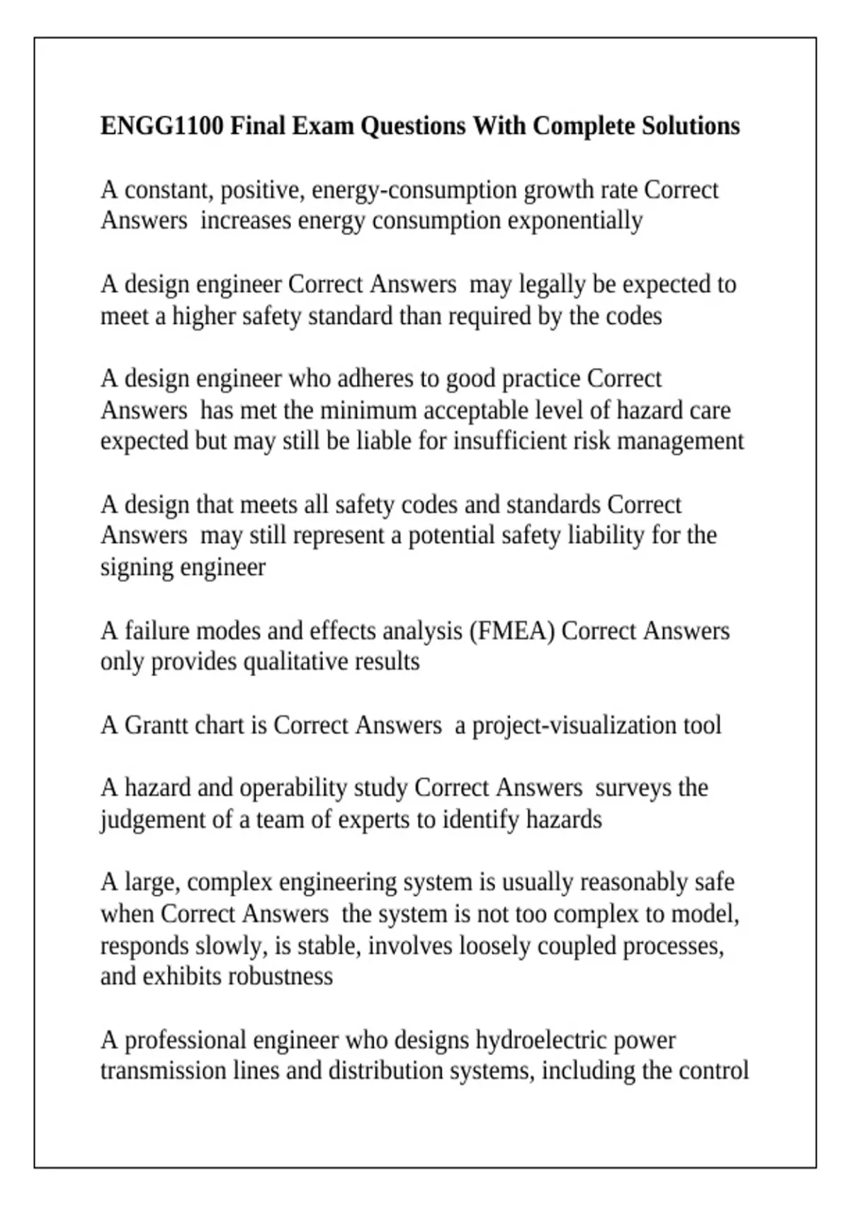 ENGG1100 Final Exam Questions With Complete Solutions