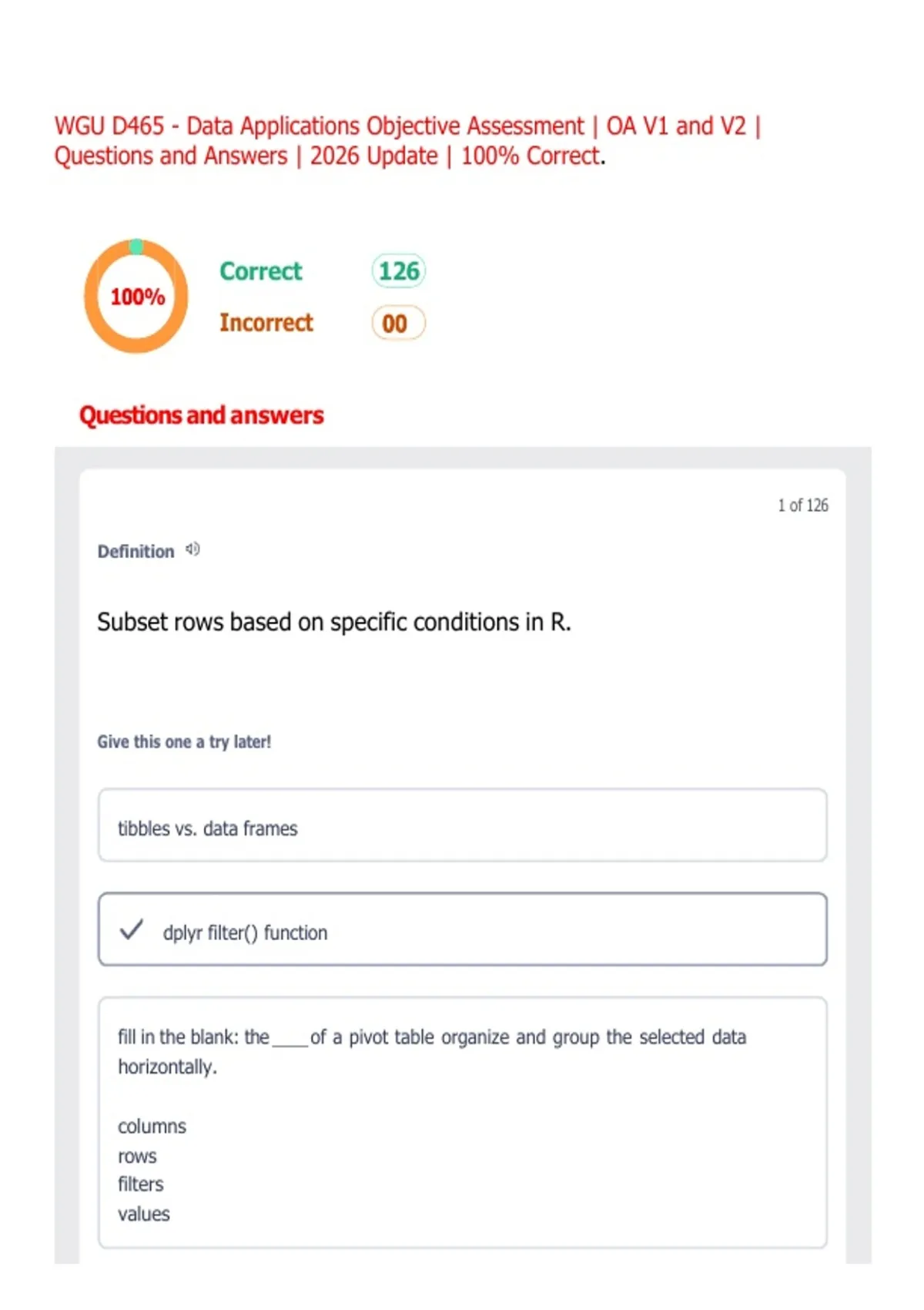 WGU D465 - Data Applications Objective Assessment | OA V1 and V2 | Questions and Answers | 2026 Update | 100% Correct.