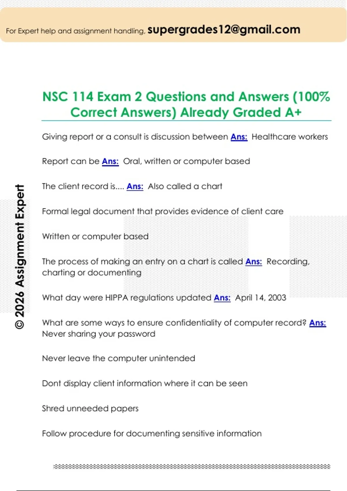 NSC 114 Exam 2 Questions and Answers (100% Correct Answers) Already Graded A+