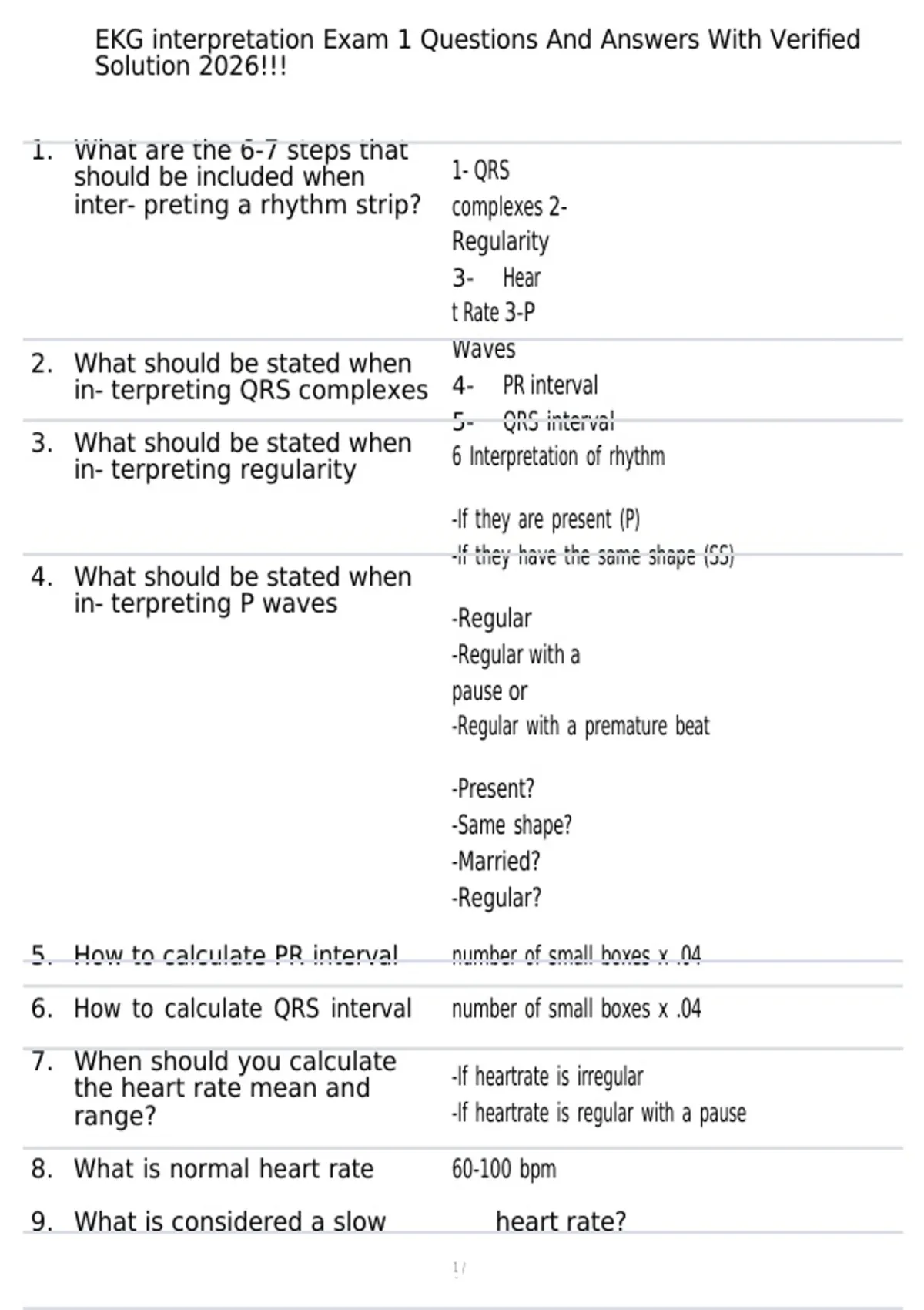 EKG interpretation Exam 1 Questions And Answers With Verified Solutions2026!!!