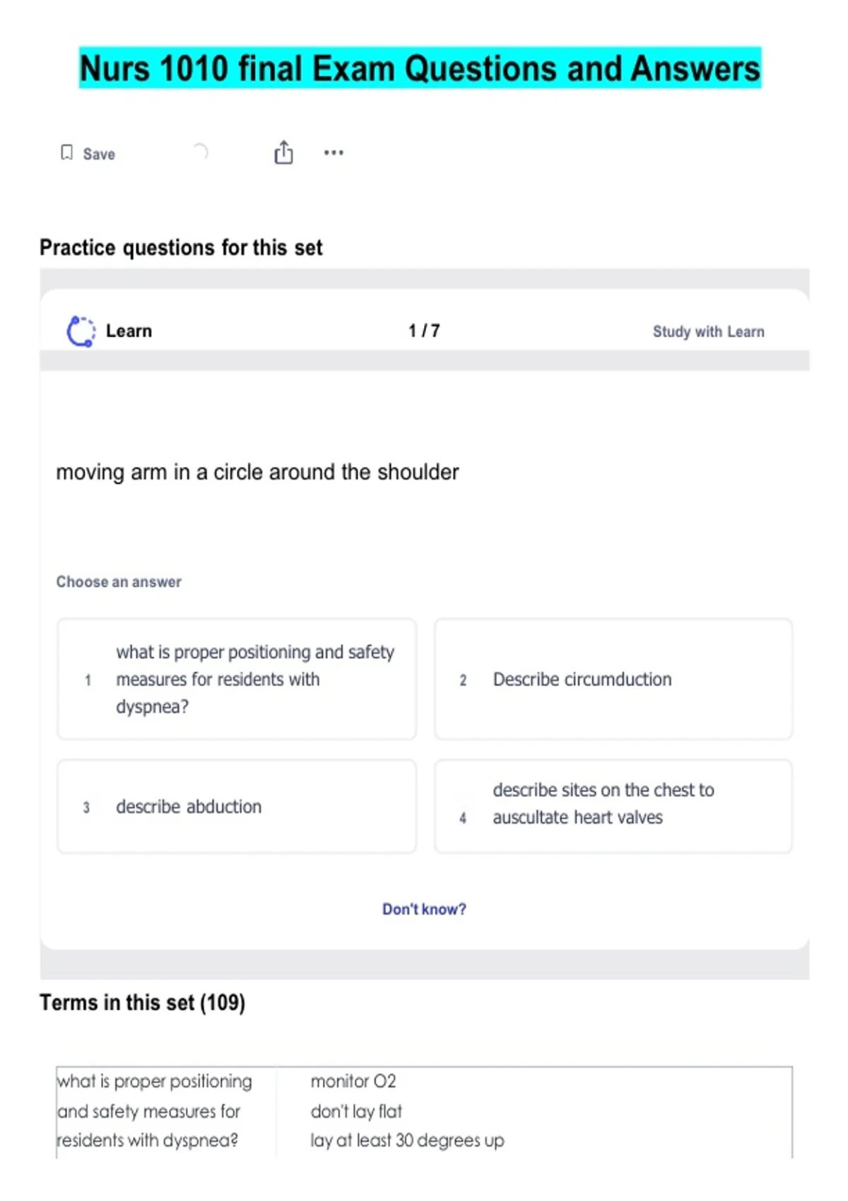 Practice questions for this set