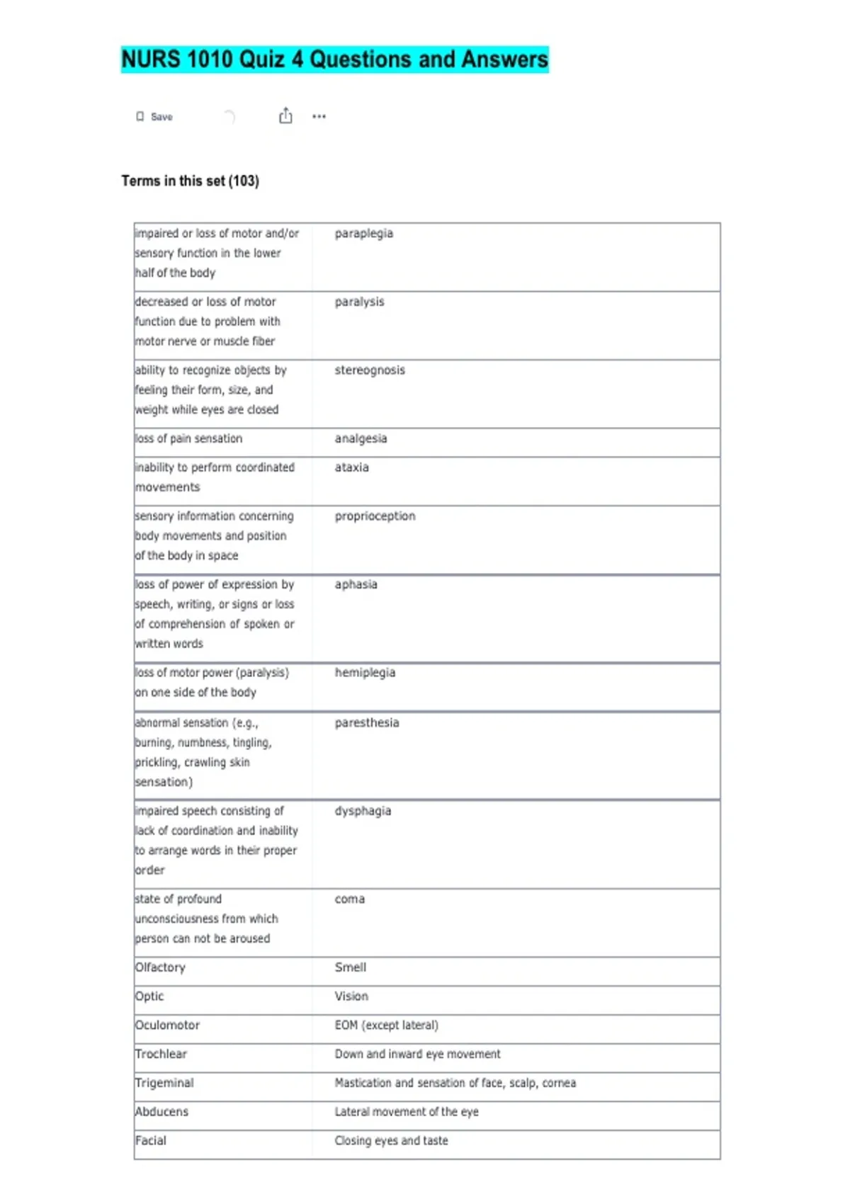 NURS 1010 Quiz 4 Questions and Answers