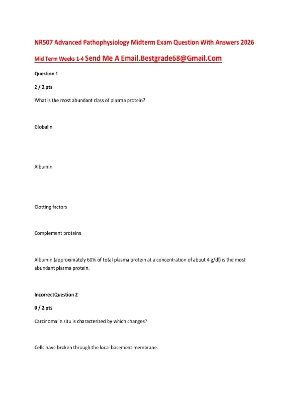 NR507 Advanced Pathophysiology Midterm Exam Question With Answers 2026