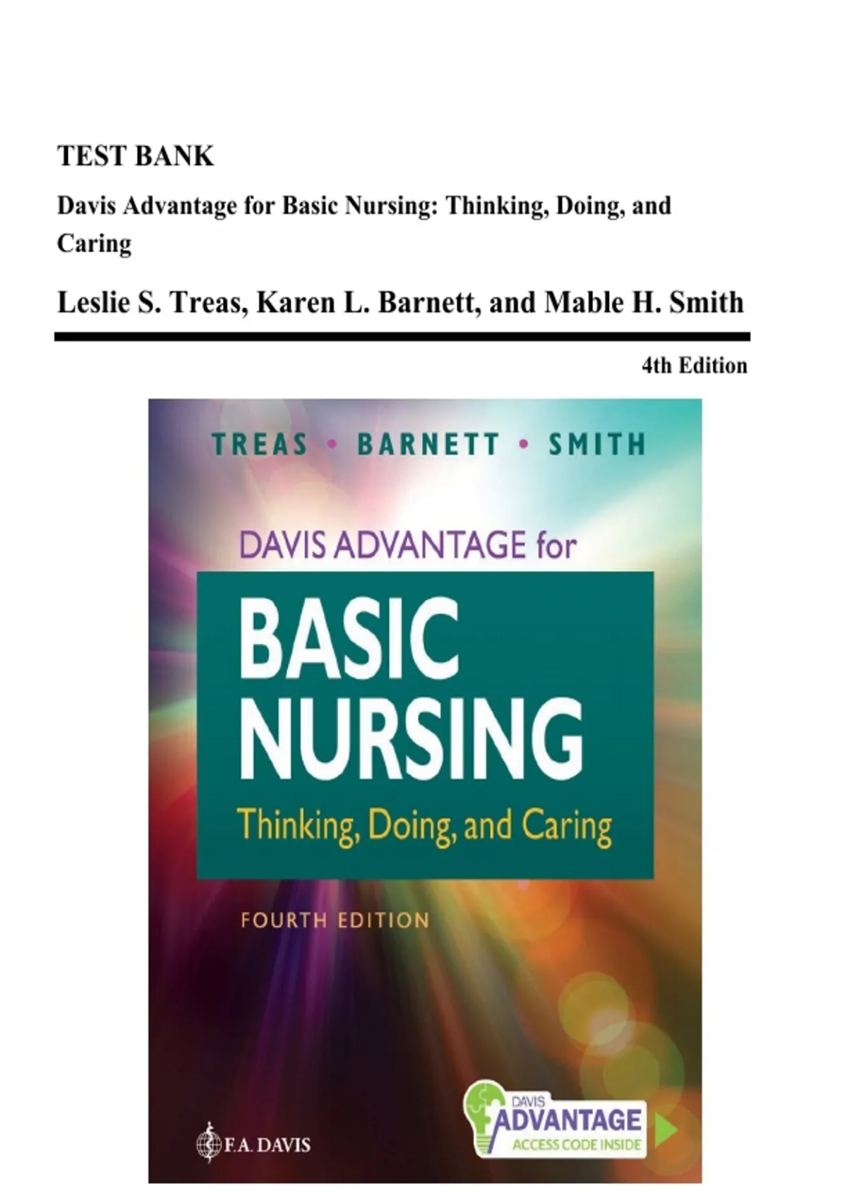 Test Bank - Basic Nursing: Thinking, Doing, and Caring, 4th Edition (Treas, 2026)