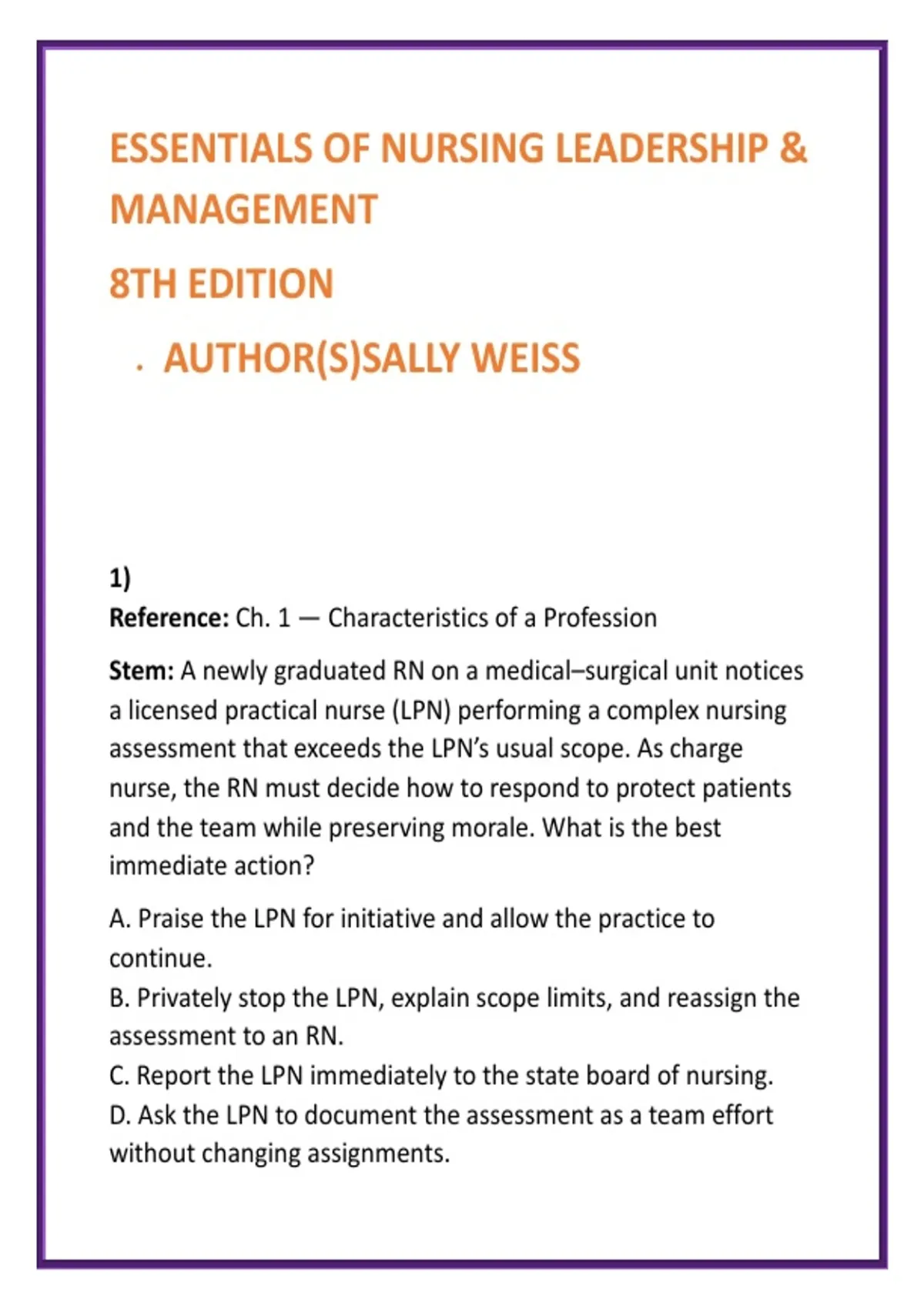 , Citation: Weiss, S. (2024). Essentials of Nursing Leadership &