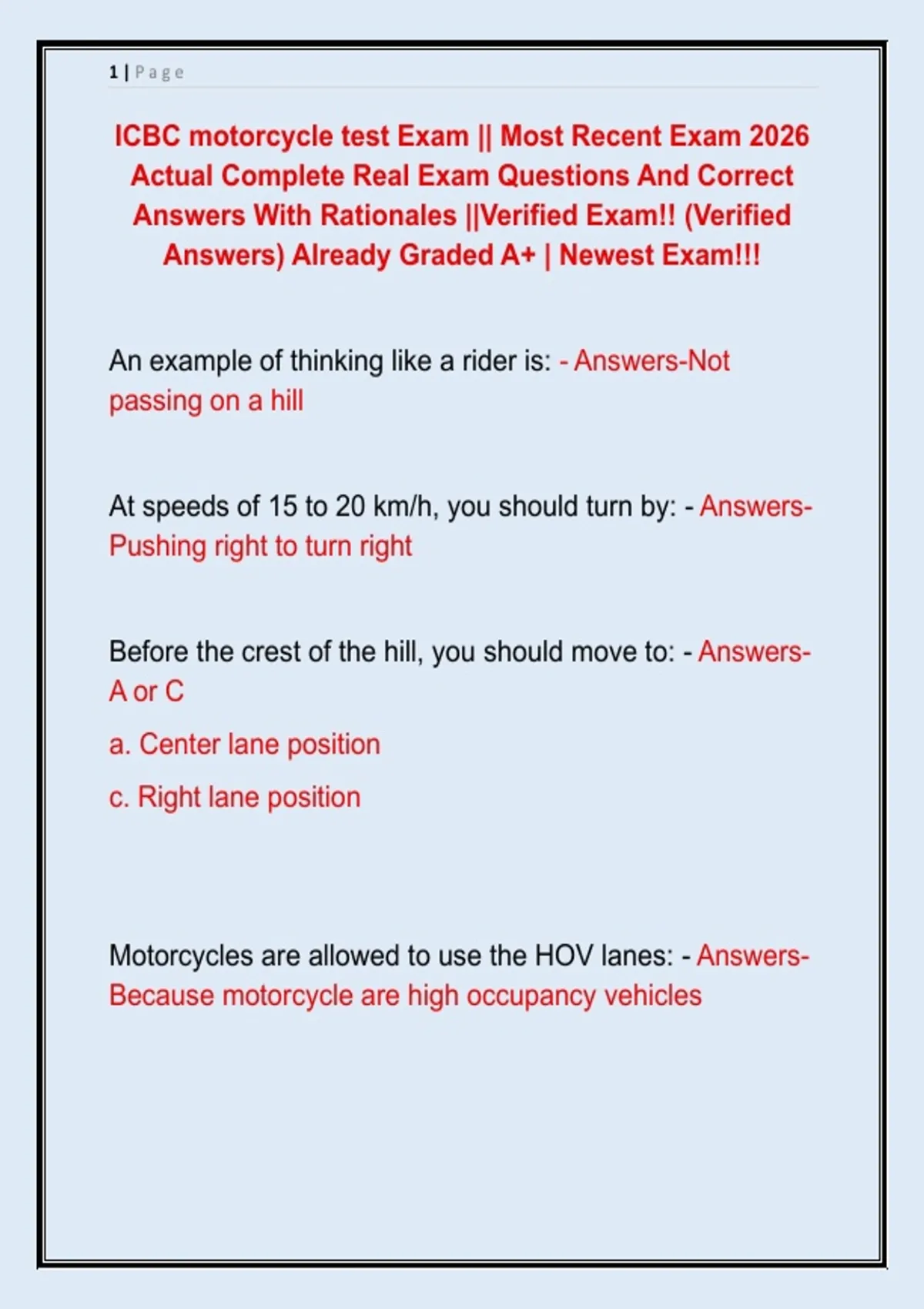 ICBC motorcycle test Exam || Most Recent Exam 2026