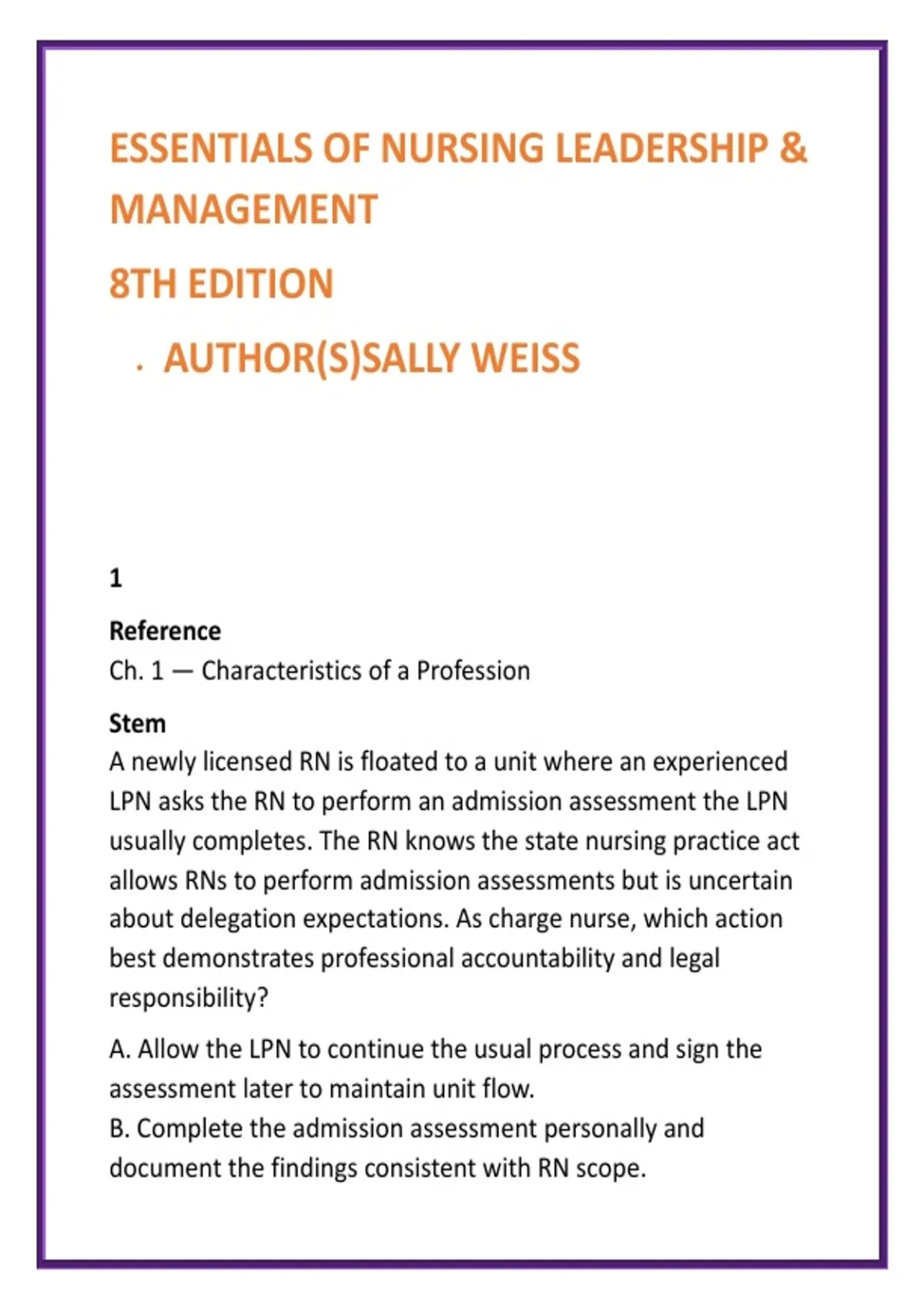 Weiss, S. (2024). Essentials of Nursing Leadership &