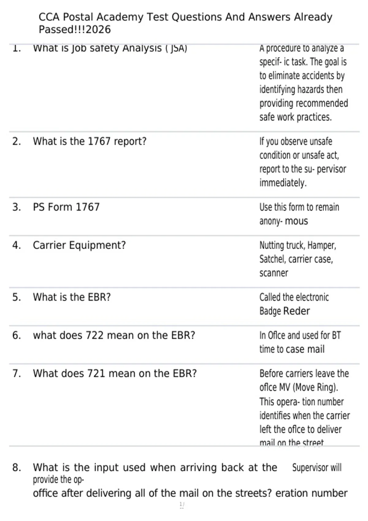 , CCA Postal Academy Test Questions And Answers Already