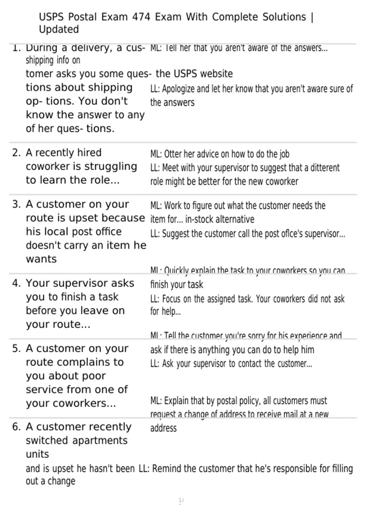 1. During a delivery, a cus- ML: Tell her that you aren't aware of the answers...