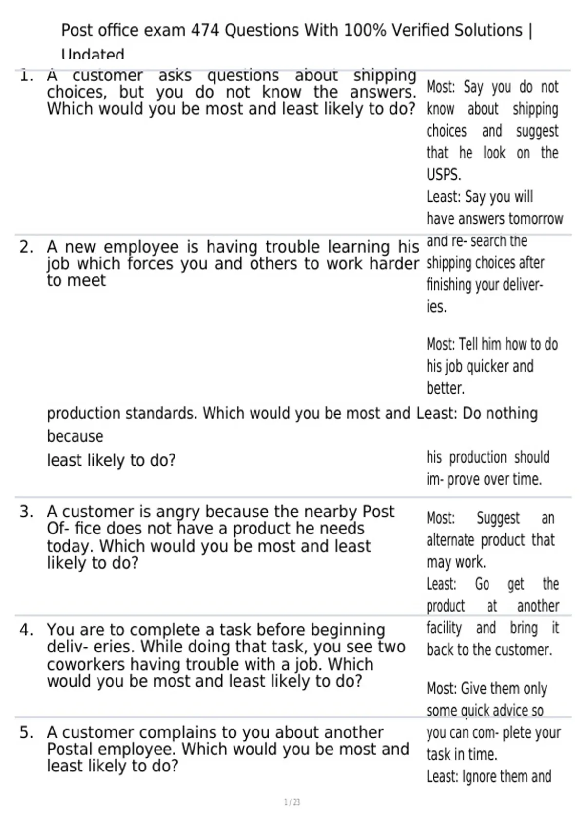 , Post office exam 474 Questions With 100% Verified Solutions |
