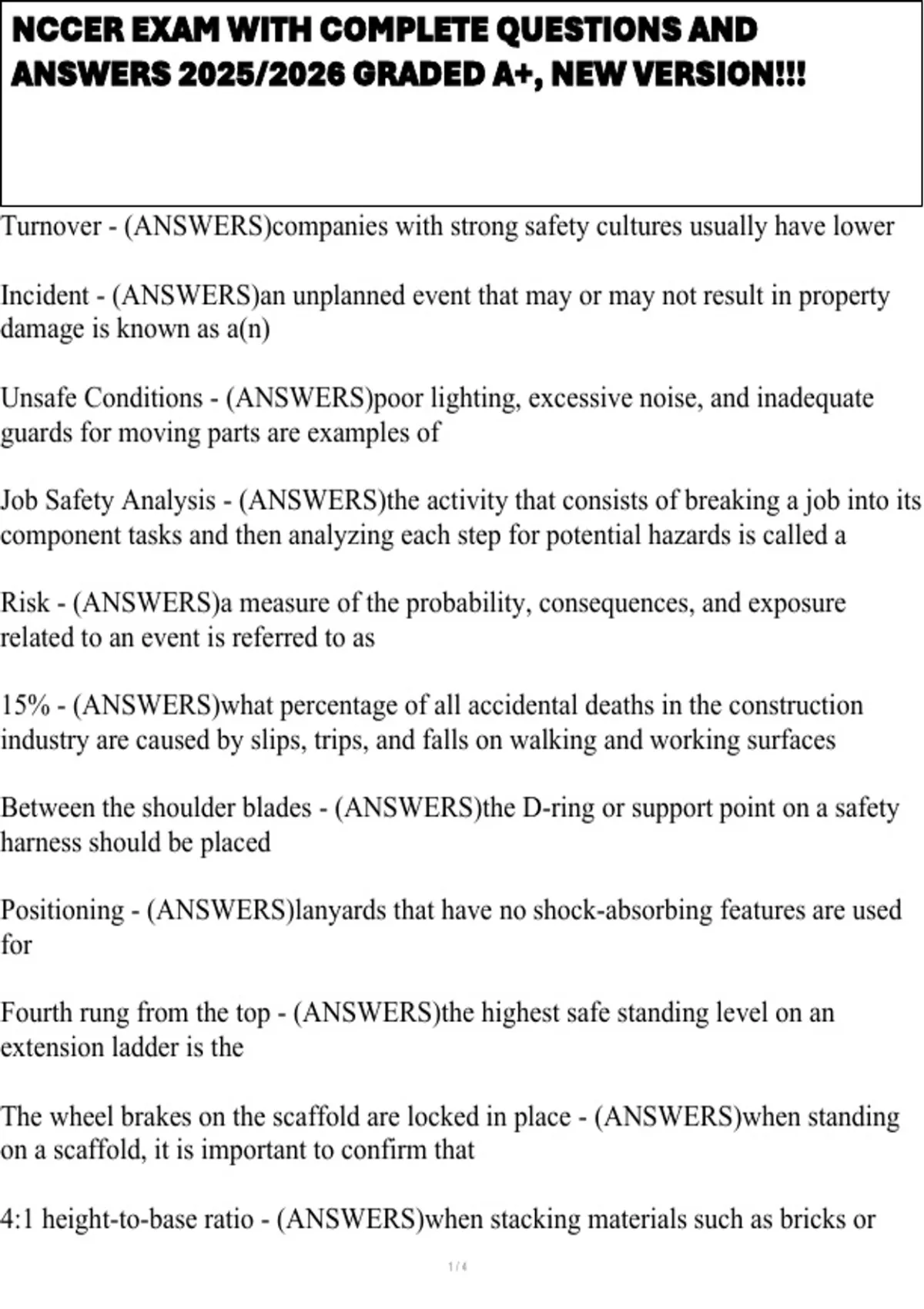 NCCER EXAM WITH COMPLETE QUESTIONS AND ANSWERS 2025/2026 GRADED A+, NEW VERSION!!!