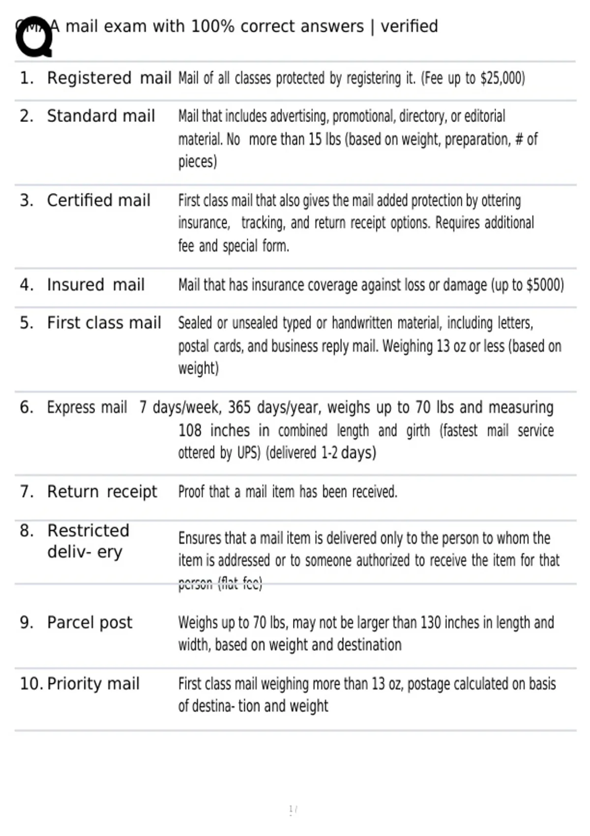 10. Priority mail First class mail weighing more than 13 oz, postage calculated on basis