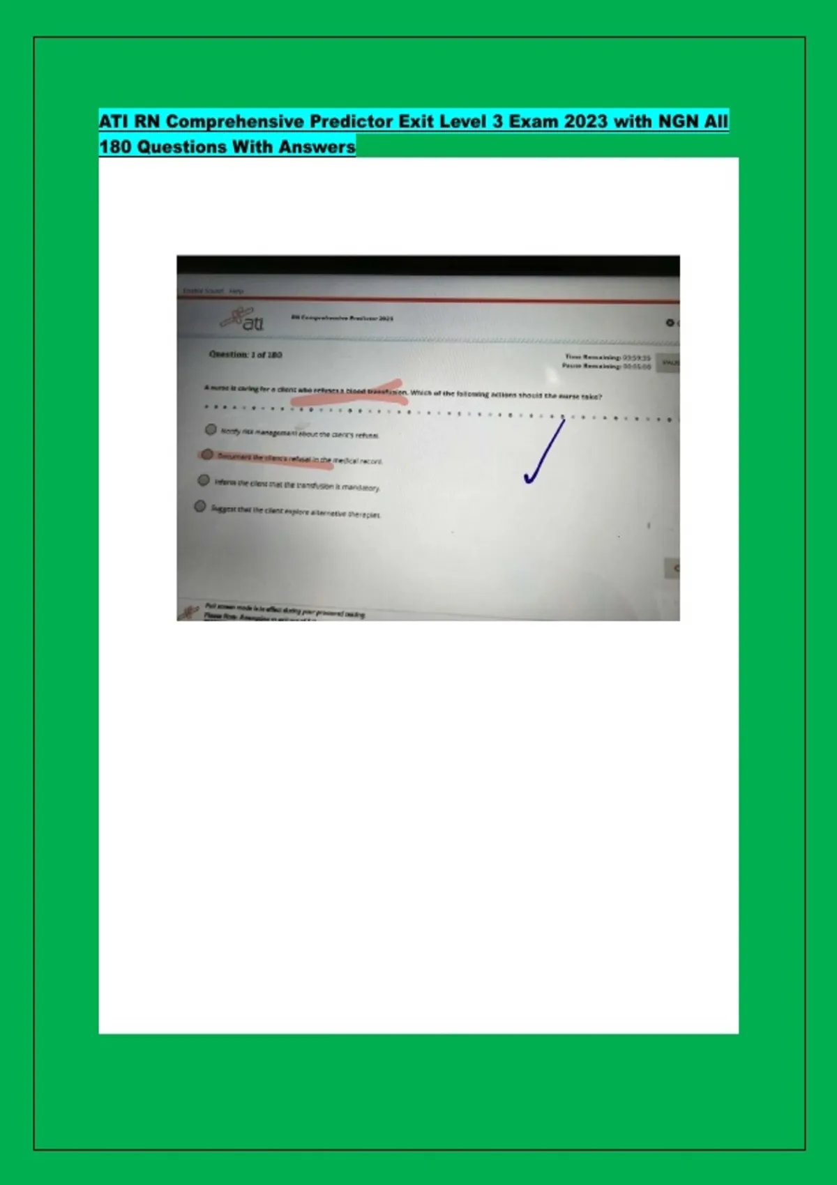 ATI RN Comprehensive Predictor Exit Level 3 Exam 2023 with NGN All 180 Questions With Answers