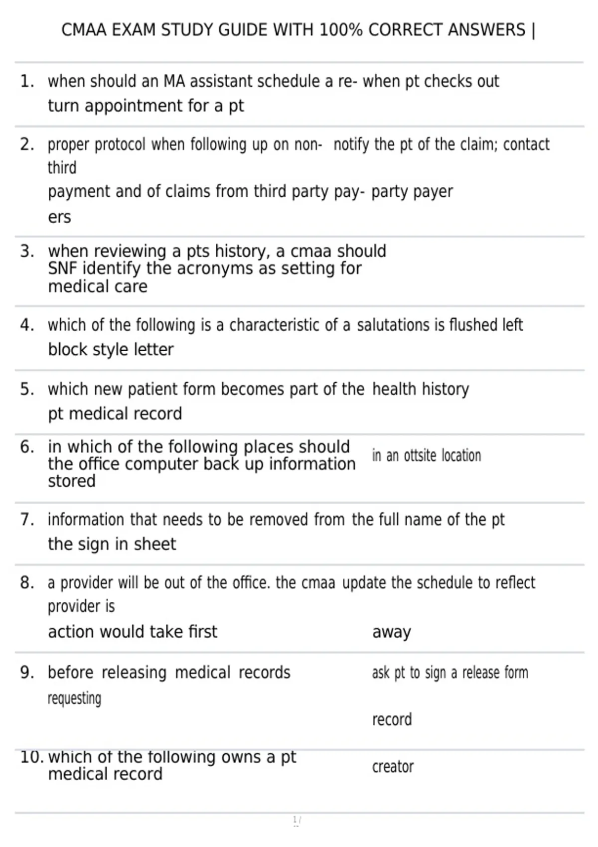 CMAA EXAM STUDY GUIDE WITH 100% CORRECT ANSWERS | VERIFIED 2020