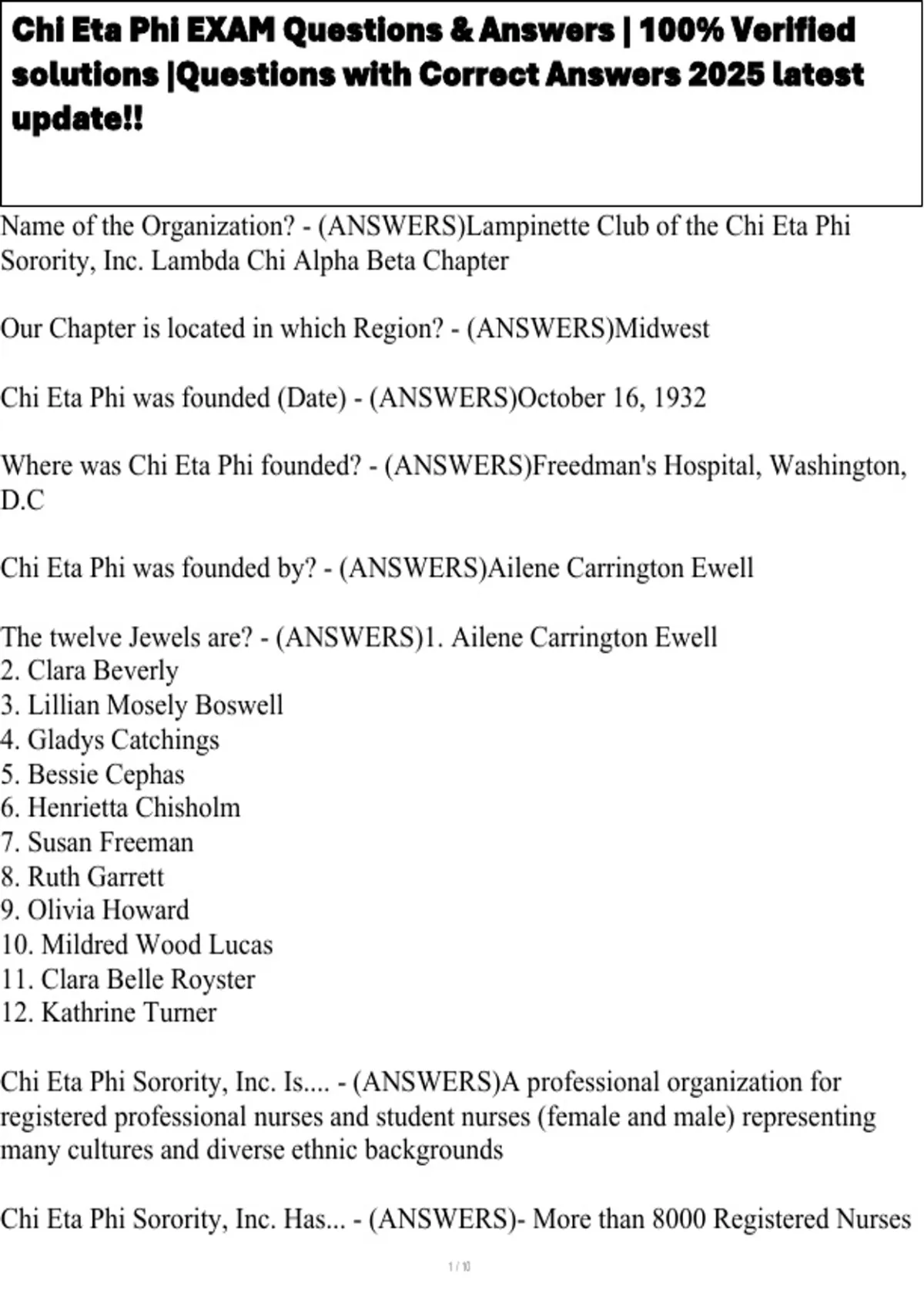 , Chi Eta Phi EXAM Questions & Answers | 100% Verified