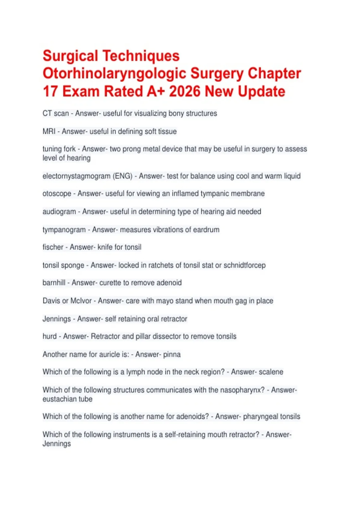 For most ear procedures, the patient is placed in the lateral position. - Answer- false,