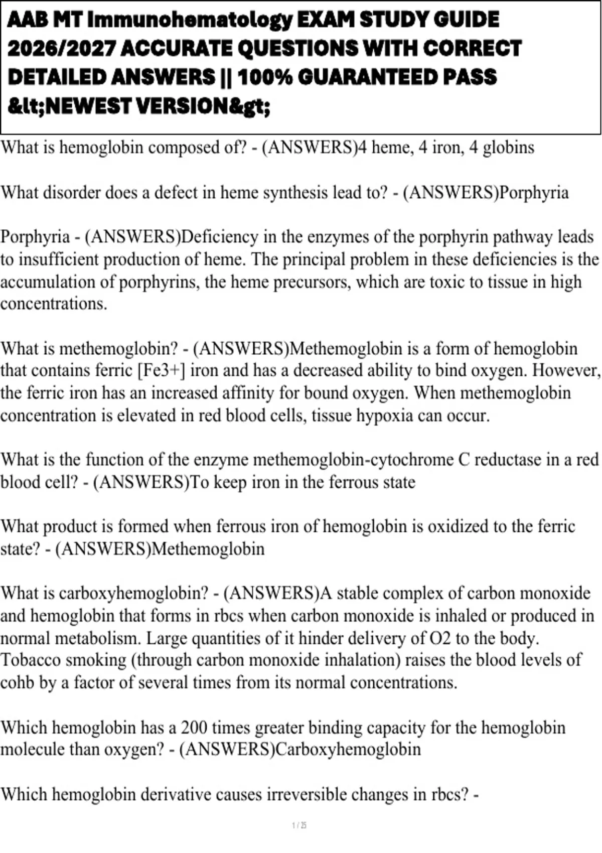 AAB MT Immunohematology EXAM STUDY GUIDE