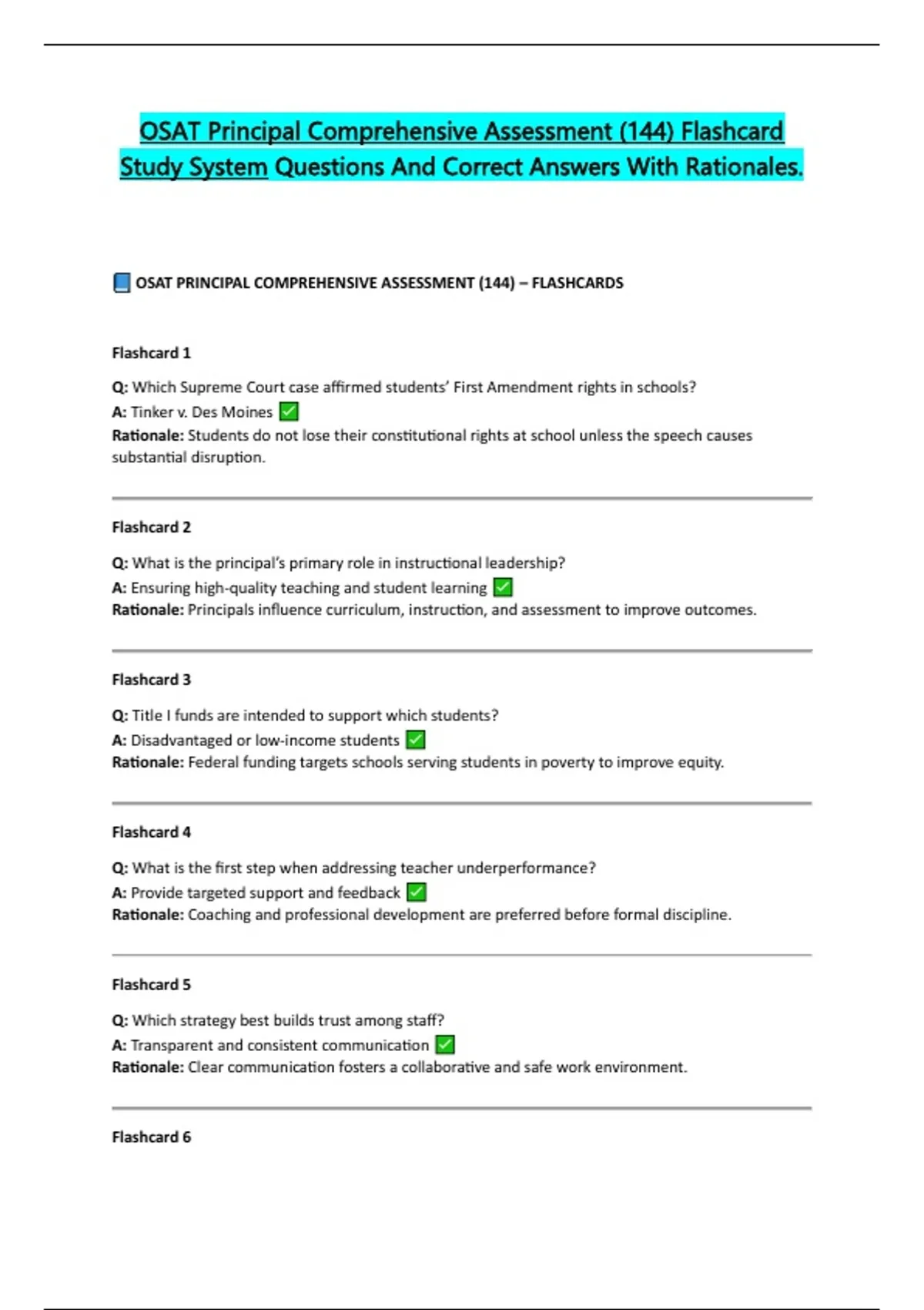 OSAT Principal Comprehensive Assessment (144) Flashcard Study System Questions And Correct Answers With Rationales.