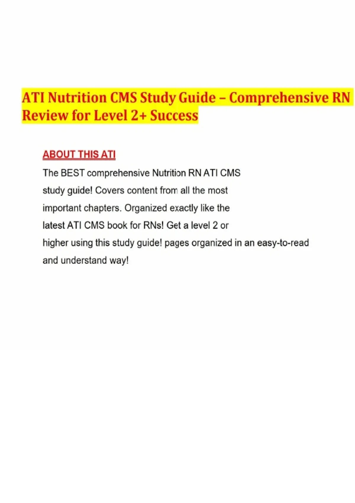 ATI Nutrition CMS Study Guide – Comprehensive RN Review for Level 2+ SATI Nutrition CMS Study Guide – Comprehensive RN Review for Level 2+ S ATI Nutrition CMS Study Guide – Comprehensive RN Review for Level 2+ S